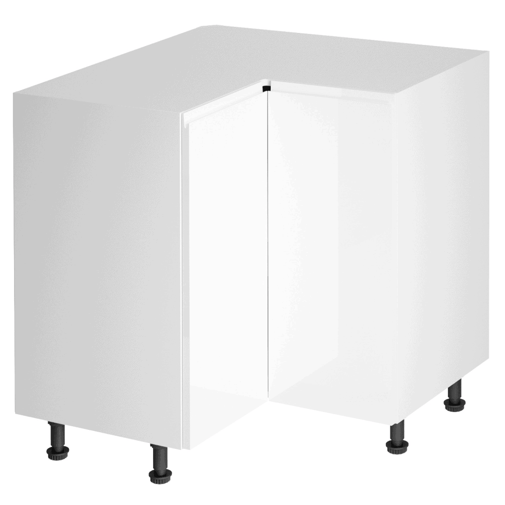 Dulap inferior colţ, alb/alb luciu extra ridicat, AURORA D90N