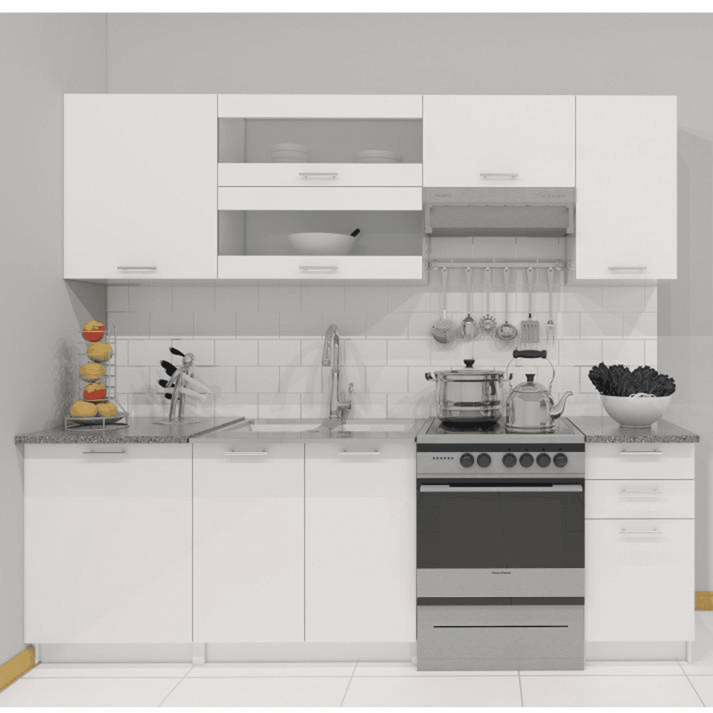Cabinetele modulare sunt livrate fără blatul de lucru. Preţul blatului de lucru este: 1 m: 299,-. La dulapurile de bucătărie vă puteţi comanda şi chiuvete, baterii şi accesorii. puteţi cumpăra o chiuvetă universală S/D LAY ON