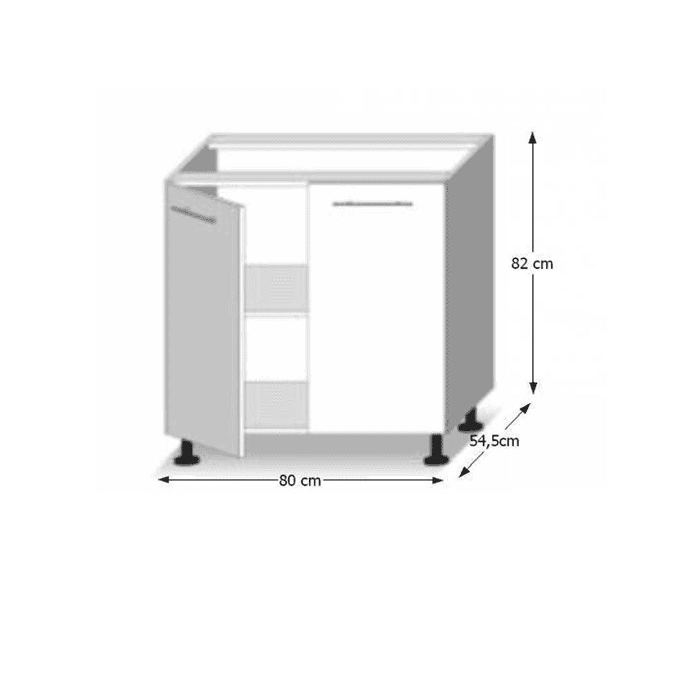 Dulap inferior cu 2 uşi din ansamblul de unităţi de bucătărie în stil şi finisaj modern.