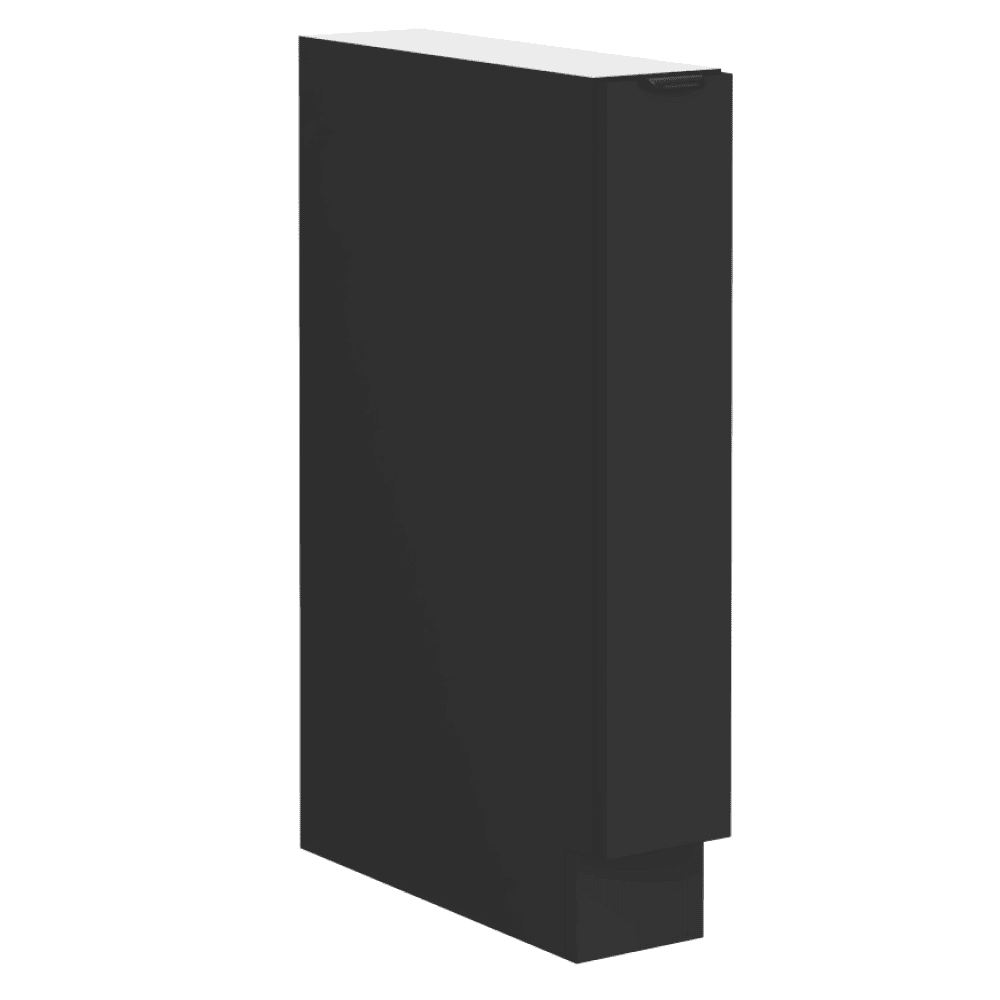 Material: DTD laminat Culoarea uşii: negru Culoarea corpului: negru mat Dimensiuni (Lxlxh): 15x52x82 cm Grosime material: 1,6 cm 1 uşă Cu mâner Culoarea mânerului: aluminiu Cu şină de bază/plintă Design modern Poate fi achiziţionată chiuveta universală LAY ON Se livrează dezasamblate Dulapurile din sectorul inferior sunt livrate inclusiv şina de bază (plintă), fără blat. Blatul de lucru cu o grosime de 3,8 cm poate fi comandat separat în finisaj de tip stejar artisan la preţul de 399,- pe m.