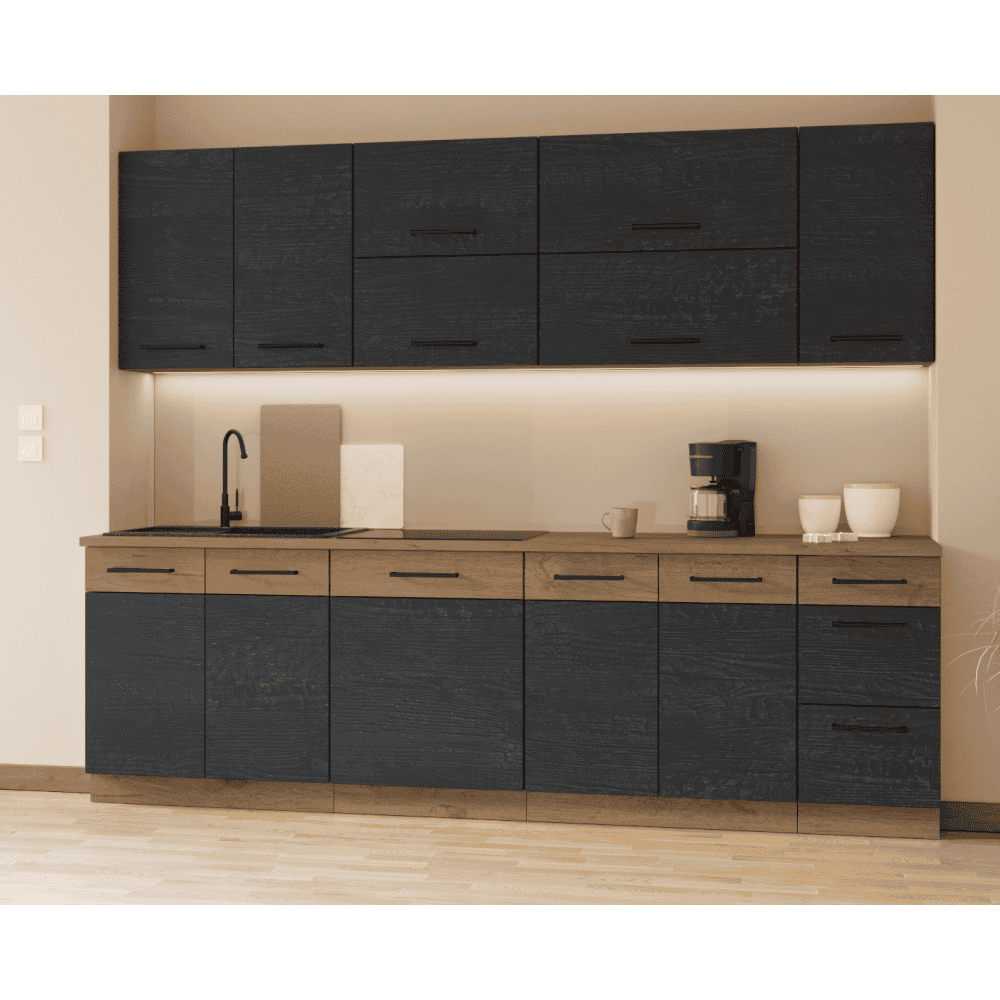 Dulapurile inferioare sunt livrate inclusiv cu plinta inferioară, fără blat de lucru.