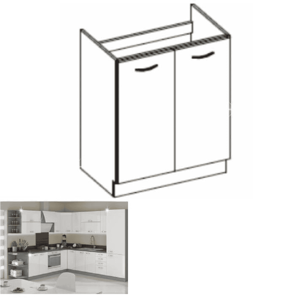 Dulap inferior pentru chiuvetă, alb extra lucios, PRADO 80 ZL 2F BB