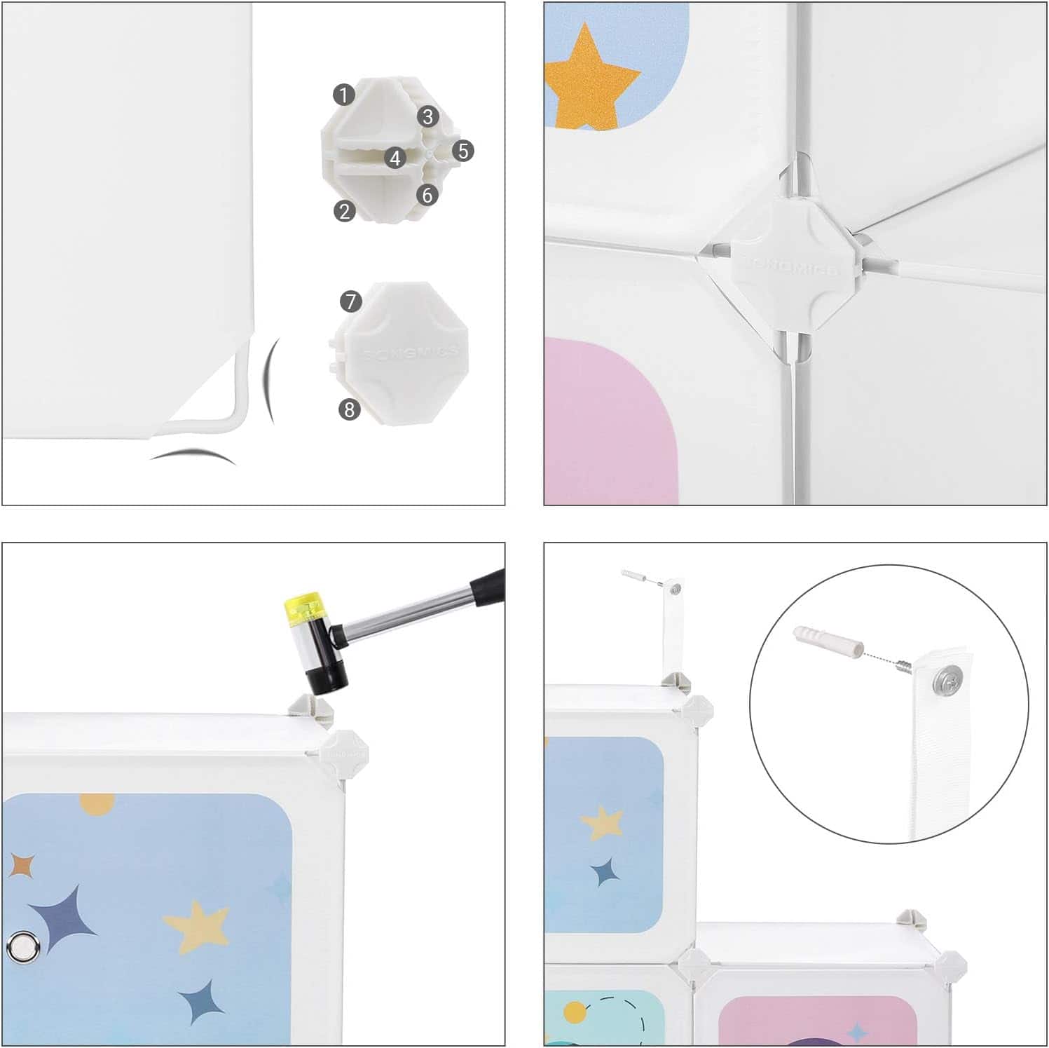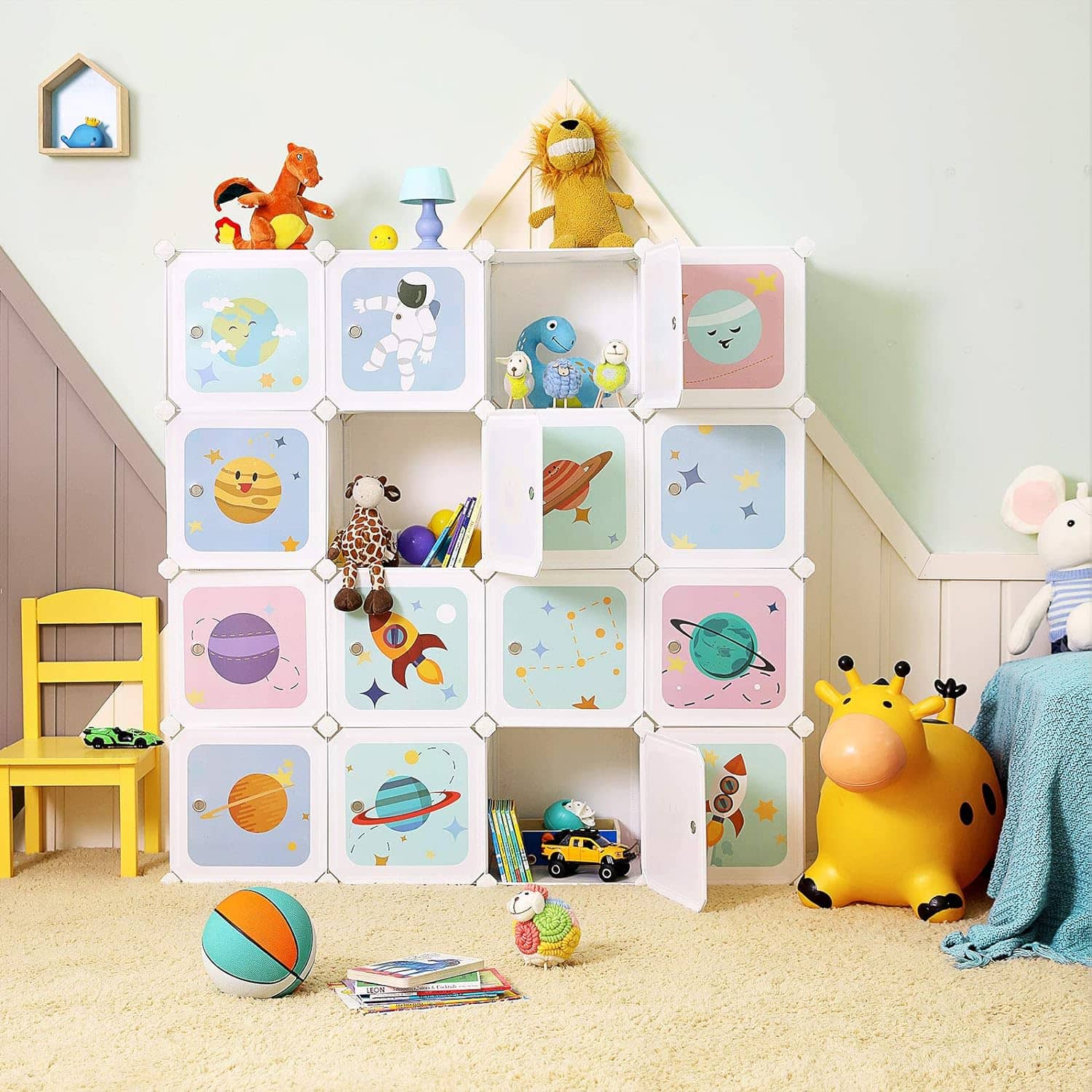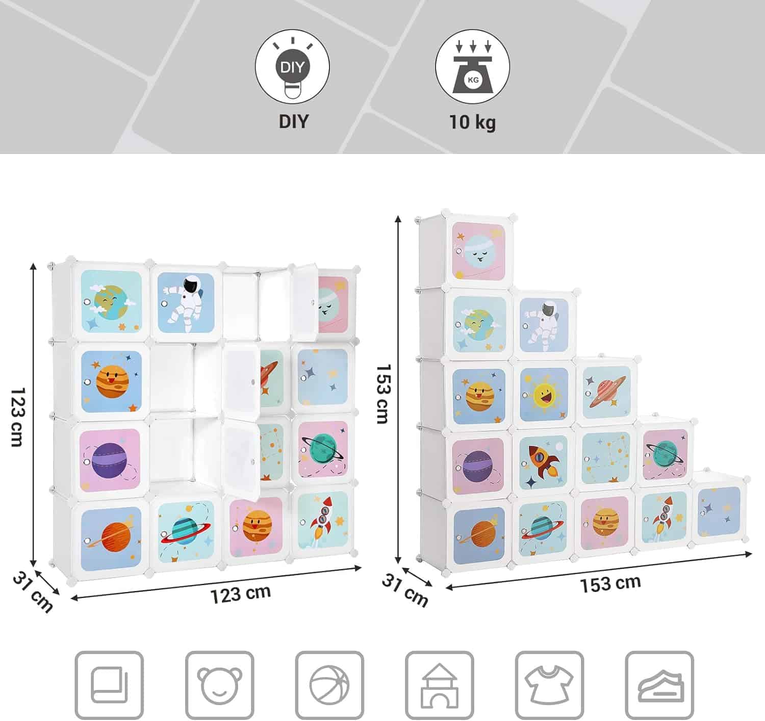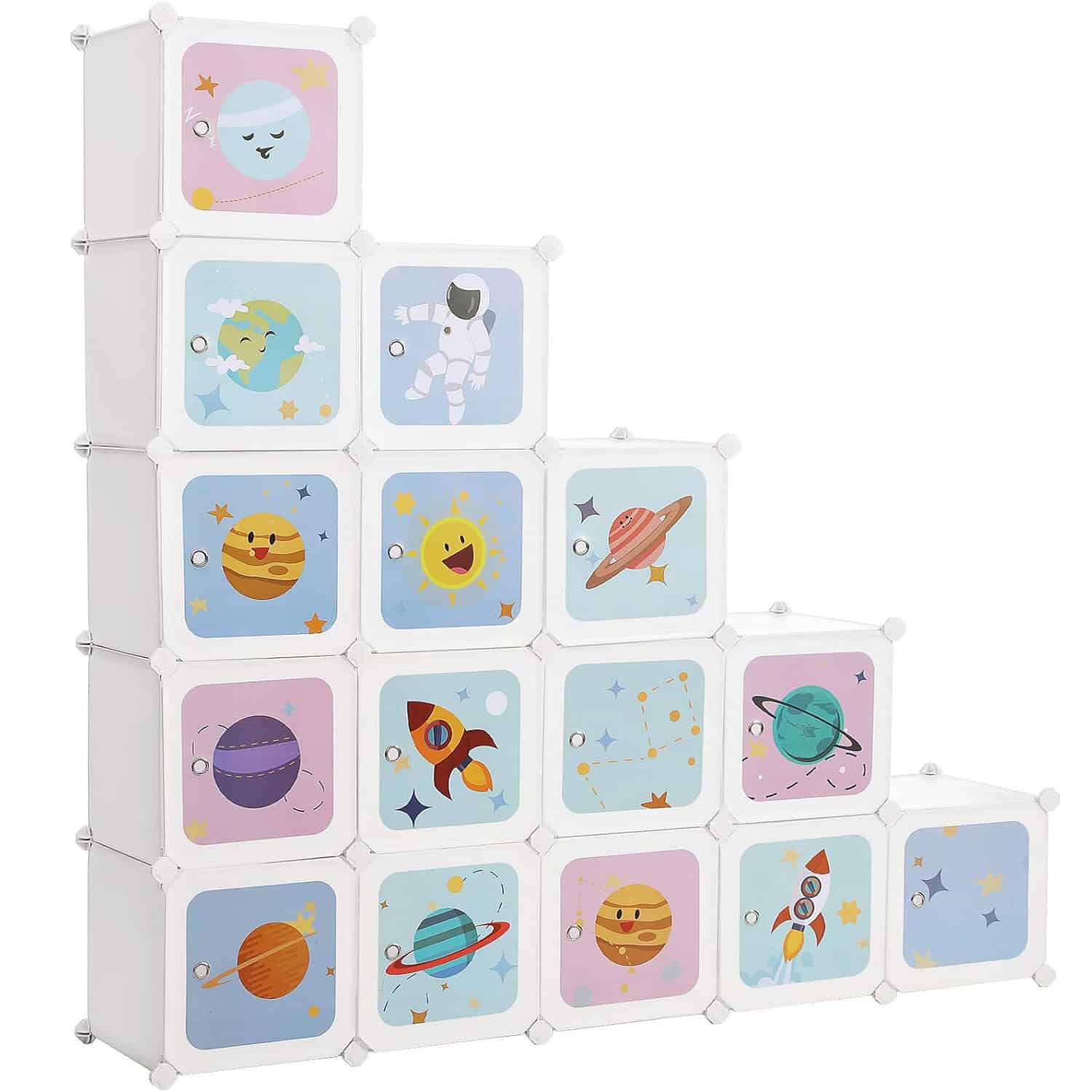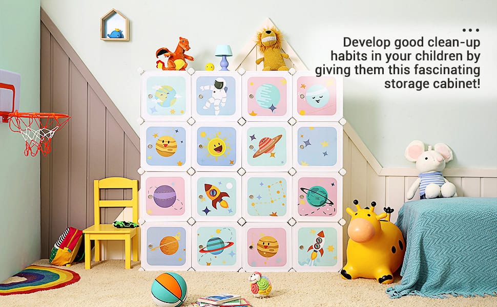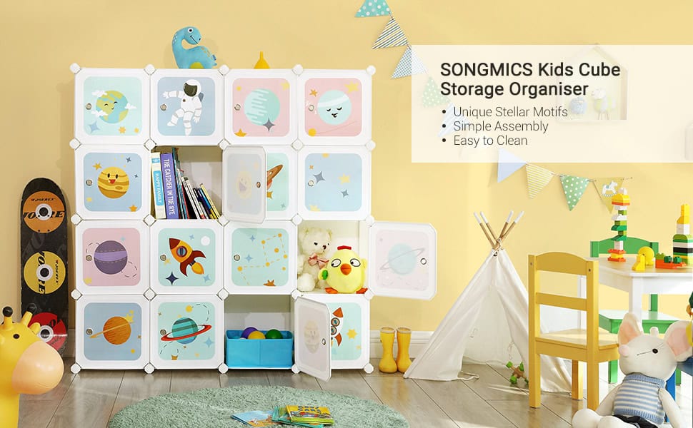 Aranjarea devine o placere: rachete, astronauti si planete – micutii tai exploratori vor fi fericiti cand vor primi acest raft cub cu motive spatiale si vor depozita jucariile, cartile sau alte obiecte in acest dulap dragut.Prindere stabila: in mod normal, copiii nu conteaza viata jucariei lor, dar parintii nu.