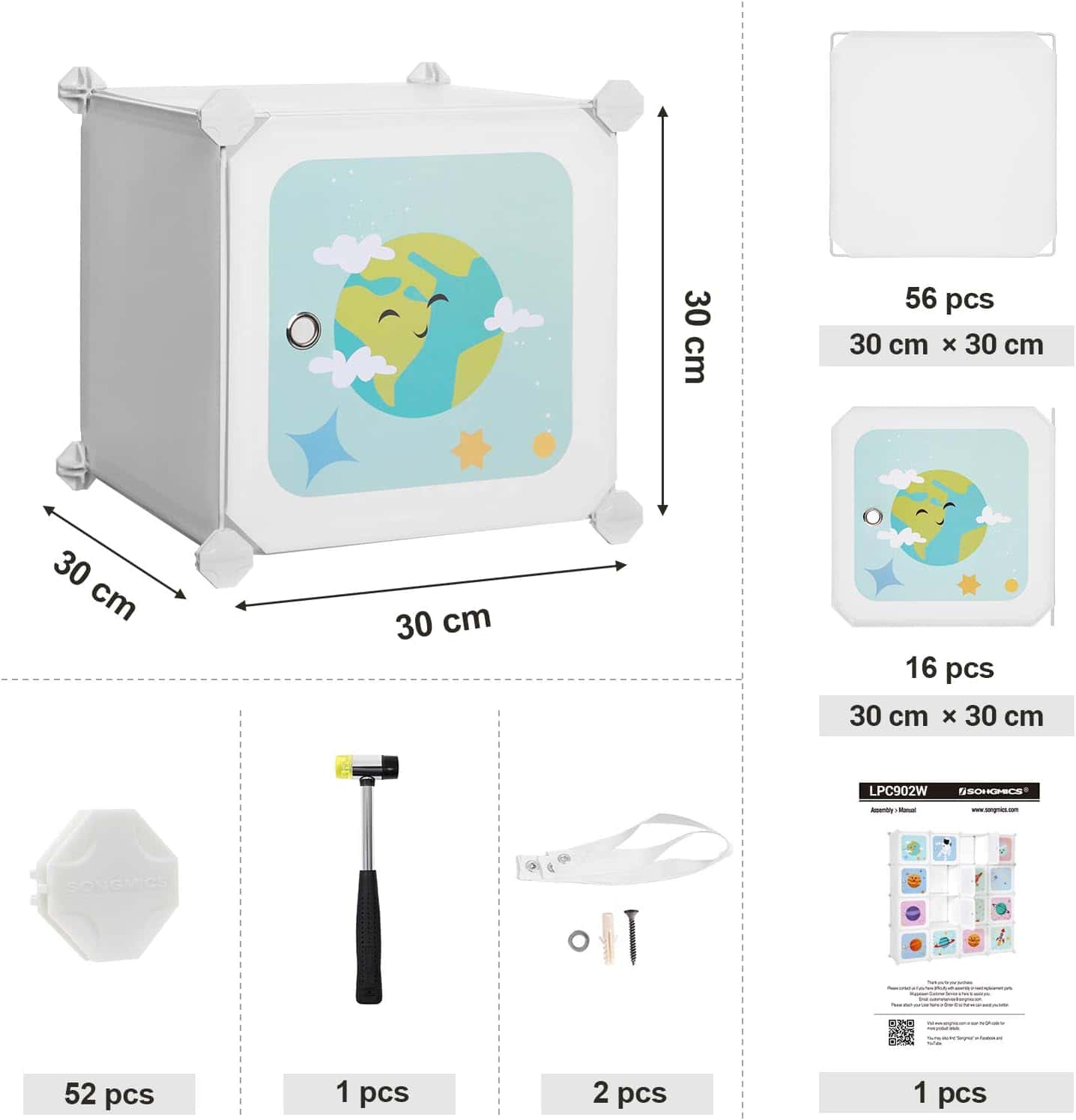 - Continutul pachetului: 56 x panou (30 x 30 cm) 16 x panou de usa cu model (30 x 30 cm) 52 x conector din plastic