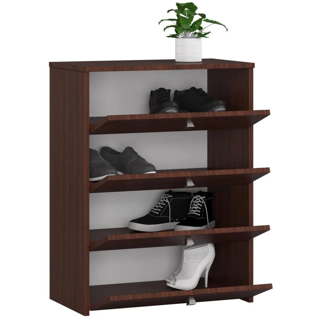 Dulap pantofi cu 4 usi rabatabile, PAL laminat, 60x33x80 cm, maro wenge Mob360
