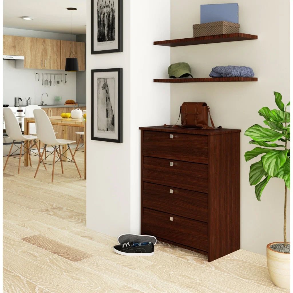 Specificatii tehnice Material: Placa laminata Grosime placa: 16 mm Finisaj: Mat Culoare: Maro inchis (tip wenge) Latime: 60 cm Adancime: 33 cm Inaltime: 80 cm Numar usi: 4 Tip usi: Rabatabile Numar rafturi: 4 Scurta descriere Pantofar practic de 60 cm, ideal pentru organizarea eficienta a incaltamintei in hol. Cele 4 usi rabatabile ascund rafturi incapatoare, oferind spatiu pentru pana la 12 perechi de incaltaminte. Realizat din pal laminat de 16 mm, rezistent la uzura, cu margini protejate prin cant ABS. Nuanta maro inchis adauga un aspect elegant si usor de integrat in decoruri clasice sau moderne. Caracteristici principale Design compact potrivit pentru holuri inguste 4 usi rabatabile pentru acces rapid 4 rafturi pentru organizare eficienta Capacitate de pana la 12 perechi de incaltaminte Placa laminata rezistenta la zgarieturi Cant ABS pentru protectie suplimentara Finisaj maro inchis elegant Montaj simplu, instructiuni incluse