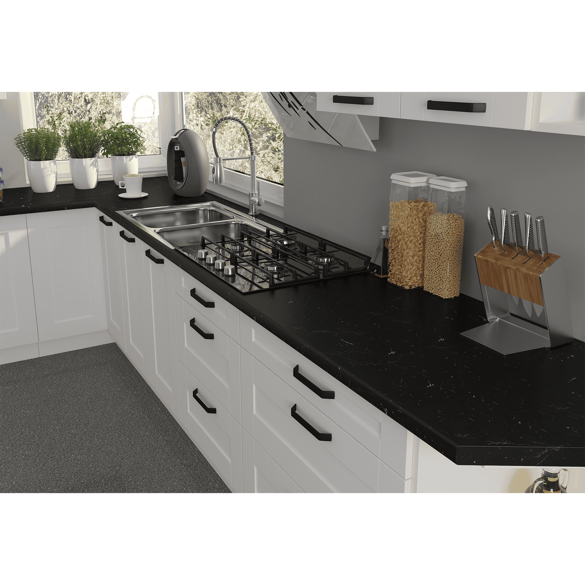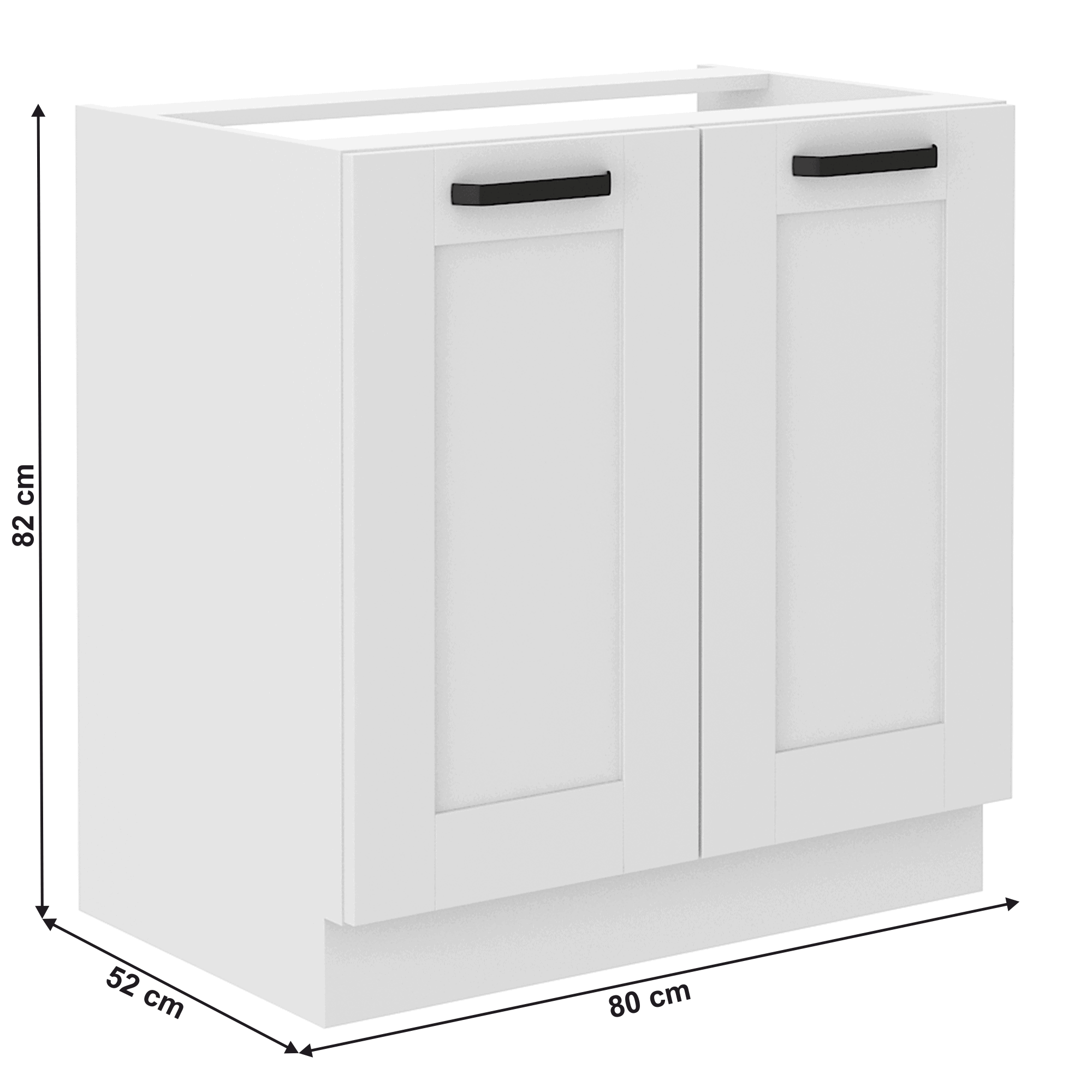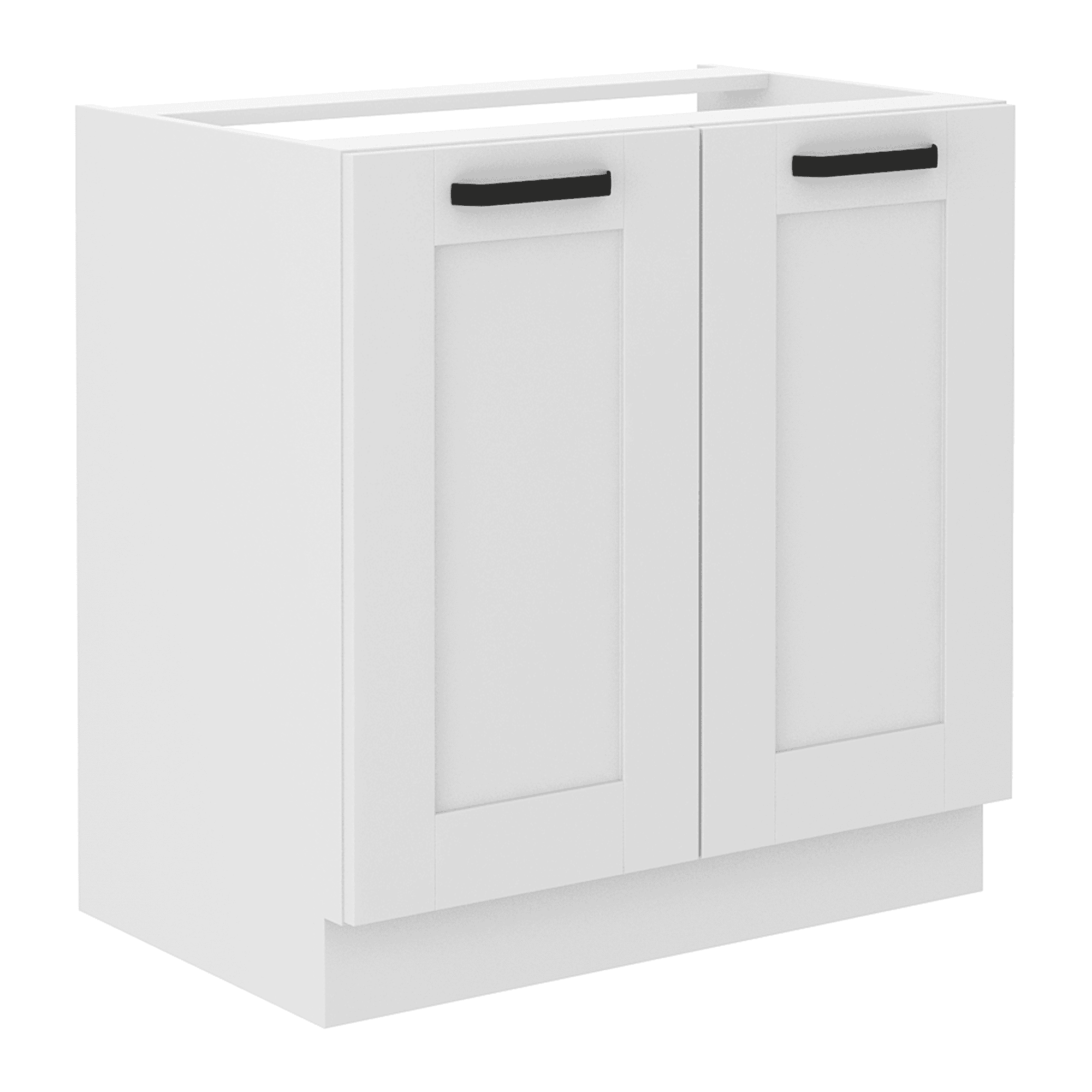Dulap pentru chiuvetă LULA 80 ZL 2F BB Material: laminat DTD/MDF înfoliat Culoare: albă Dimensiuni (LxAxÎ): 80x52x82 cm Grosime material: 1,6 cm Grosime uşă: 2 cm Cu două uşi, Cu mâner metalic, Culoarea mânerului: neagră, Cu şină inferioară/plintă, Fără blat de lucru, Furnizat fără chiuvetă, Design dinamic modern, Se livrează dezasamblat, Opţiunea de a cumpăra o chiuvetă universală LAY ON, Dulapurile inferioare sunt furnizate împreună cu şina inferioară, fără blat de lucru. Opţiunea de a achiziţiona blat de lucru din stejar artizan stejar artizan la preţul de 399 lei/m sau marmură roma la preţul de 379 lei/m. Opţiunea de a achiziţiona o chiuvetă universală LAY ON.
