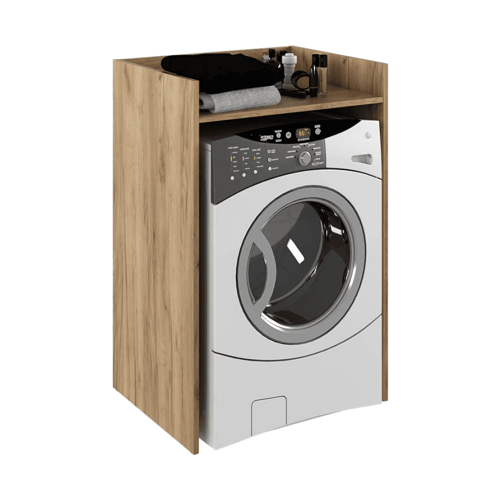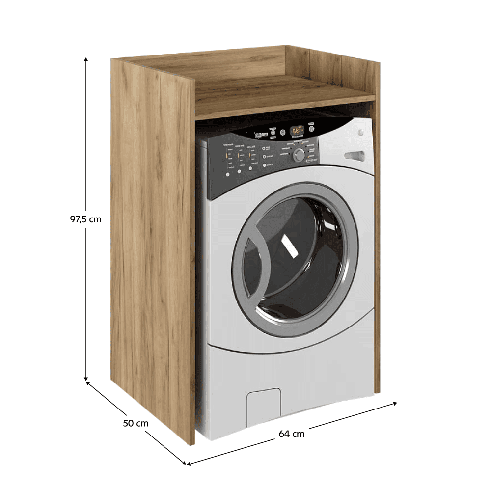 Material: PAL melaminat Culoare: stejar artisan Dimensiuni (Lxlxh): 64x50x97,5 cm Spaţiu pentru maşina de spălat (Lxl): 60,8×86,4 cm Grosime material: 1,6 cm Portanţa plăcii superioare: 10 kg Construit pe şine Material: plastic Recomandăm fixarea pe perete Produs slovac de calitate Livrat dezasamblat