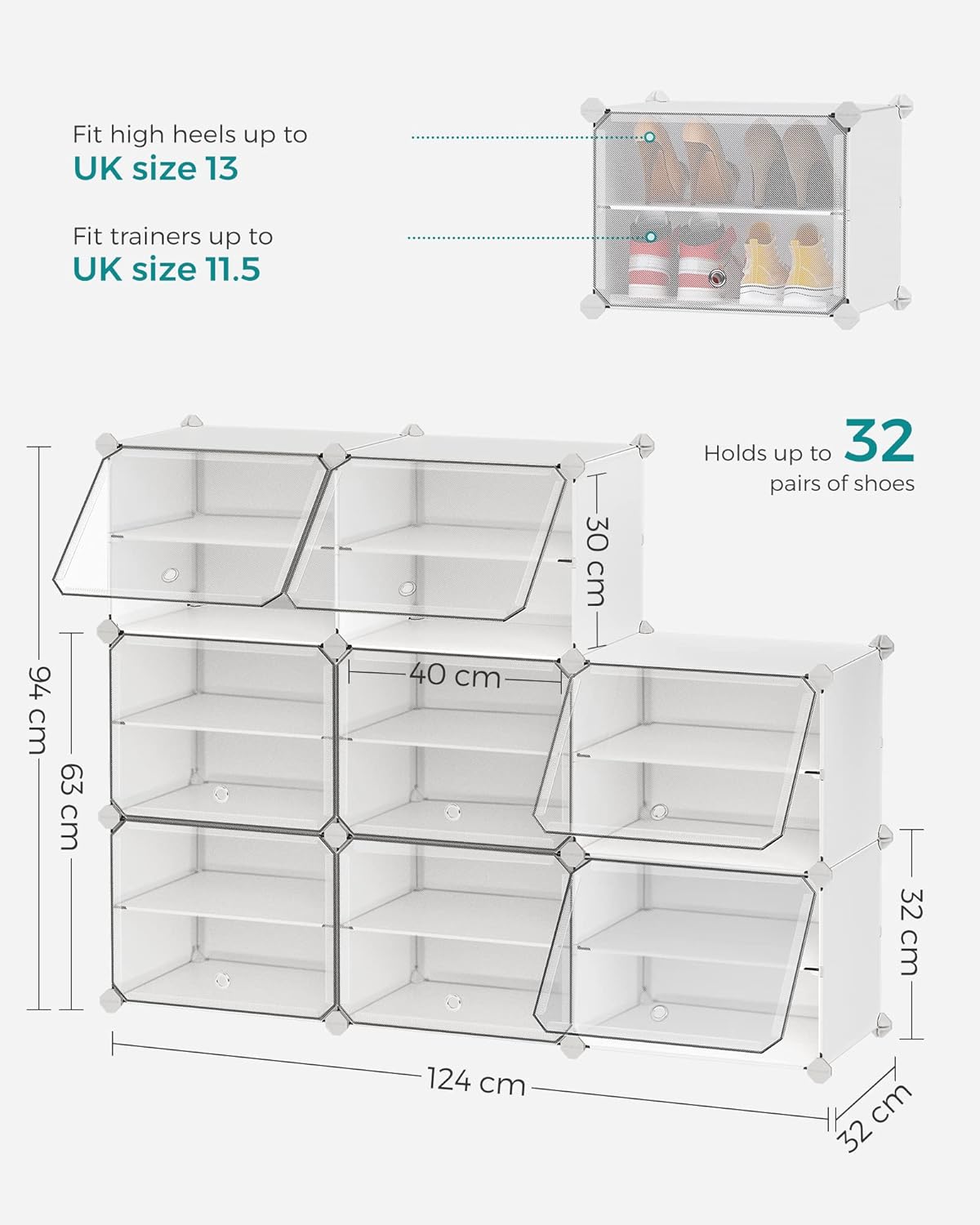 - Pastreaza incaltamintea organizata si la indemana cu acest dulap modular cu 8 compartimente. Designul flexibil permite configurarea in functie de spatiu, iar materialele durabile il fac potrivit pentru utilizare zilnica in orice incapere. Caracteristici principale: