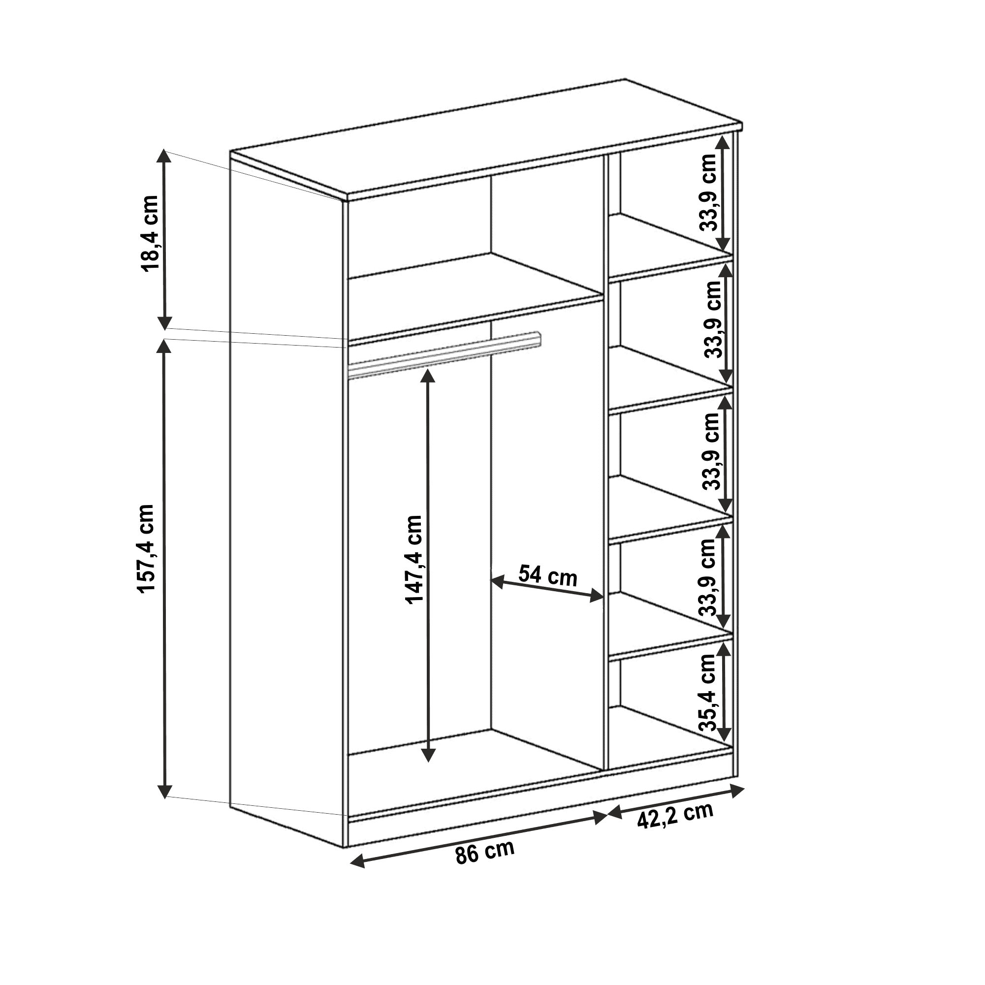 Dimensiuni (LxAxH): 135x57x190 cm.Grosimea materialului: 32 mm. Grosimea materialului la restul pieselor: 16 mm