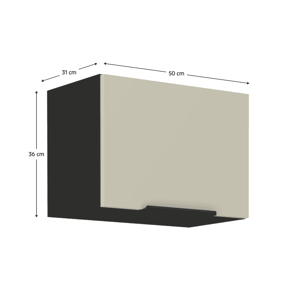 Material: DTD laminat Culoarea uşii: caşmir Culoarea dulapului: negru mat Dimensiuni (Lxlxh): 50x31x36 cm Grosime material: 1,6 cm Uşă simplă, Cu uşă, Cu sistem de închidere silenţioasă a uşii, Cu mâner metalic, Culoarea mânerului: aluminiu, Design modern, Livrat dezasamblat, Dulapurile inferioare sunt furnizate împreună cu şina inferioară, fără blat de lucru. Opţiunea de a achiziţiona blat de lucru din marmură roma la preţul de 379 Lei/m. Opţiunea de a achiziţiona o chiuvetă universală LAY ON.