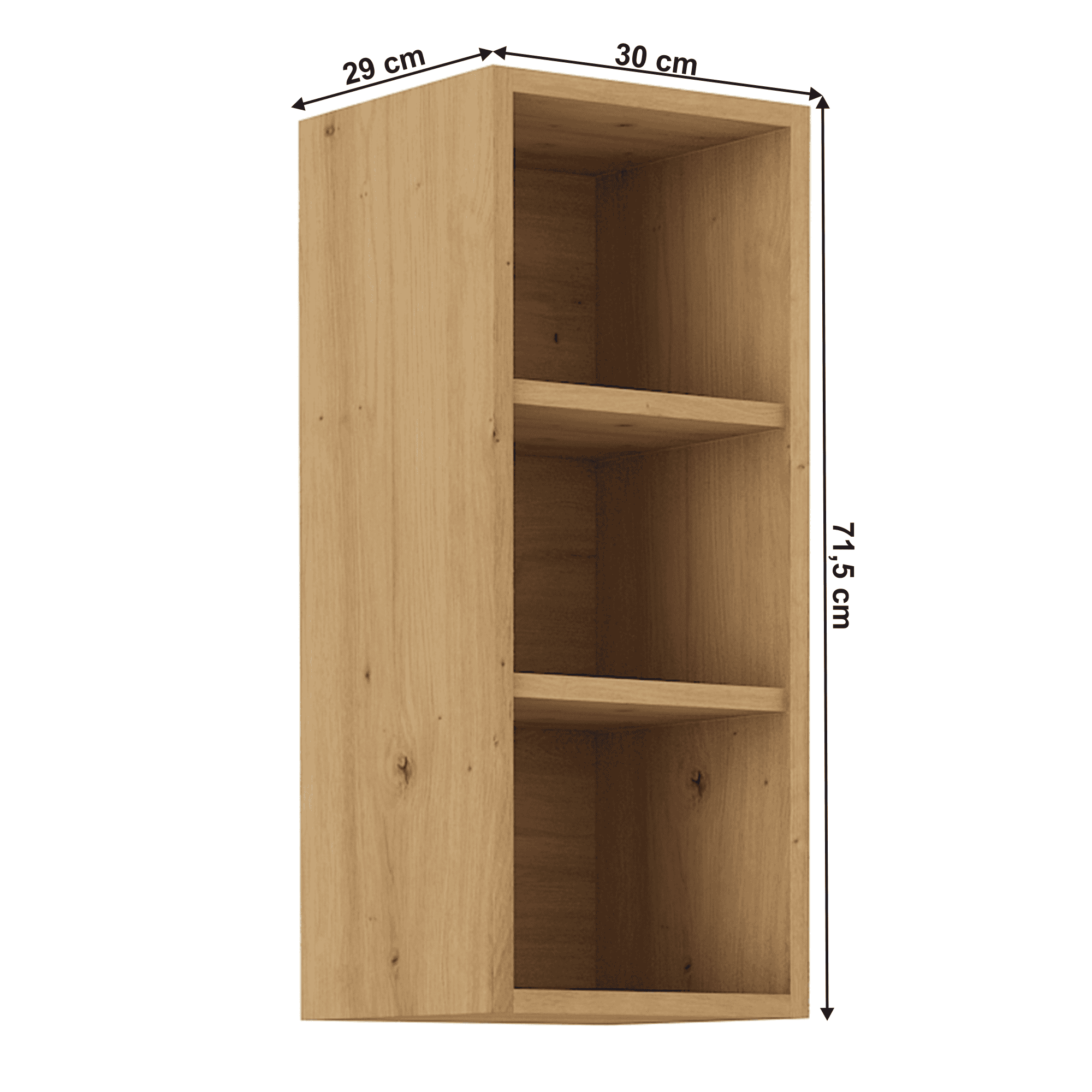 Dulap superior cu rafturi LULA 30 G-72 OTW Material: laminat DTD Culoare: stejar artizan Dimensiuni (LxAxÎ): 30x29x71,5 cm Grosime material: 1,6 cm Cu rafturi, Fără uşă, Design dinamic modern, Livrat dezasamblat, Opţiunea de a cumpăra o chiuvetă universală LAY ON, Dulapurile inferioare sunt furnizate împreună cu şina inferioară, Fără blat de lucru. Opţiunea de a achiziţiona blat de lucru din stejar artizan stejar artizan la preţul de 399 lei/m sau marmură roma la preţul de 379 lei/m. Opţiunea de a achiziţiona o chiuvetă universală LAY ON.
