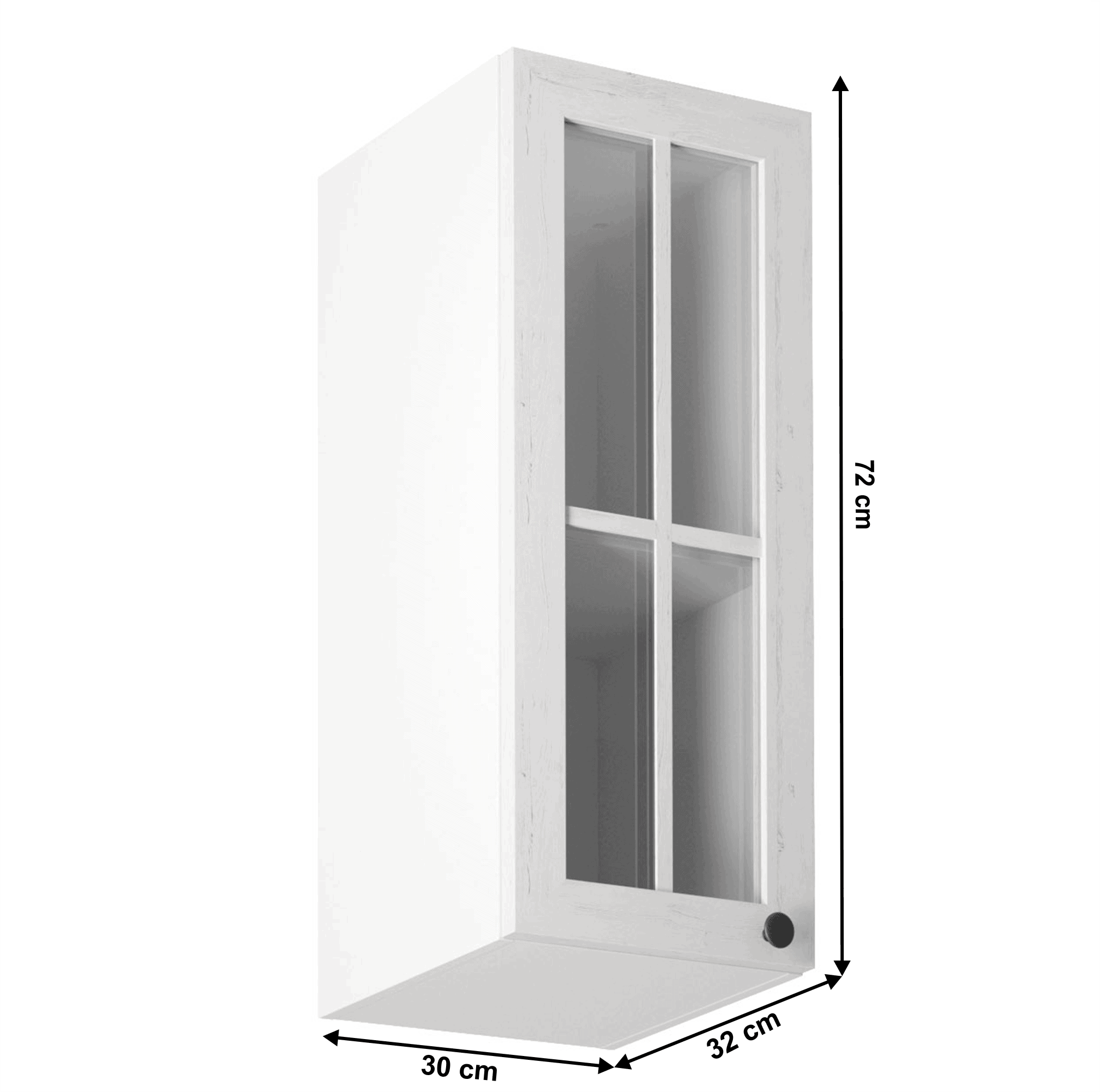 Dulap superior cu sticlă G30S, model stânga, alb/pin Andersen, PROVENCE