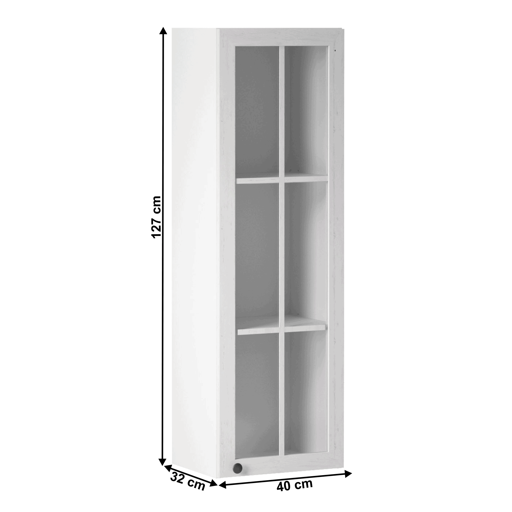 Dulap superior cu sticlă W40S, alb/pin Andersen, dreapta PROVENCE