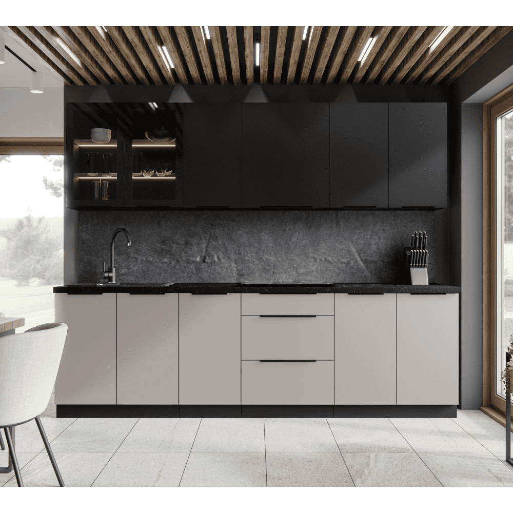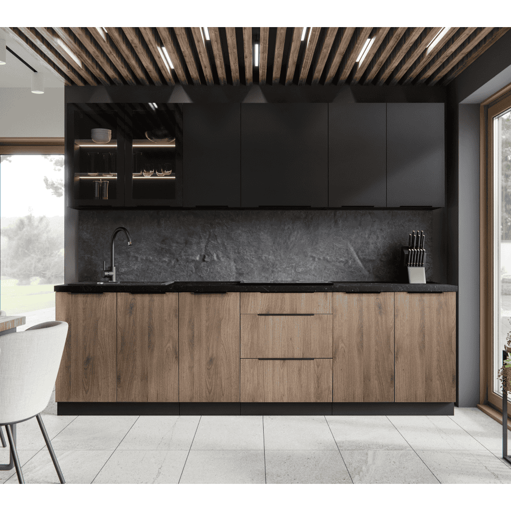 Material: DTD laminat Culoarea uşii: negru Culoarea corpului: negru mat Dimensiuni (Lxlxh): 60x31x36 cm Grosime material: 1,6 cm Uşă cu balamale Cu mâner Culoarea mânerului: aluminiu Design modern Sistem de închidere silenţioasă a uşii Livrat dezasamblat Dulapurile din sectorul inferior se livrează inclusiv şina inferioară (plintă), fără blat de lucru. Blatul de lucru cu o grosime de 3,8 cm poate fi comandat separat în finisaj de tip stejar artisan la preţul de 399,- pe m.