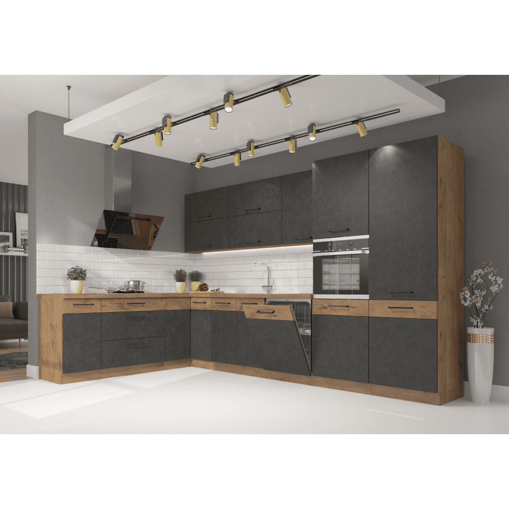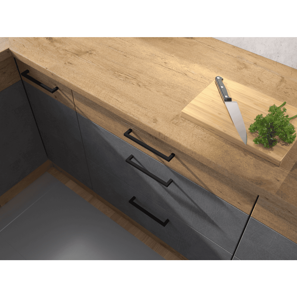 Dulapurile inferioare sunt livrate cu plinta inferioară şi fărăblat de lucru.