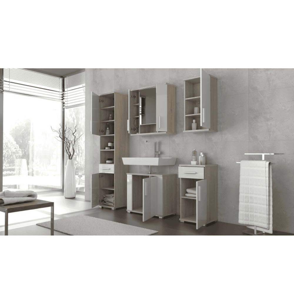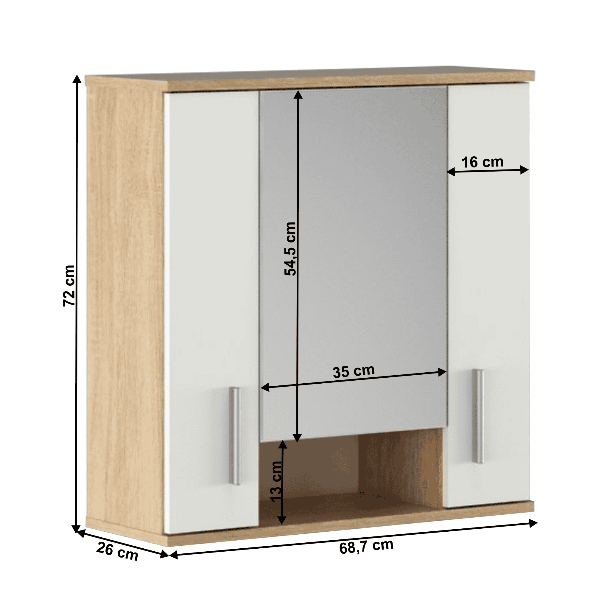 Dulap suspendat cu oglindă, stejar sonoma/ alb mat, LESSY NEW 01
