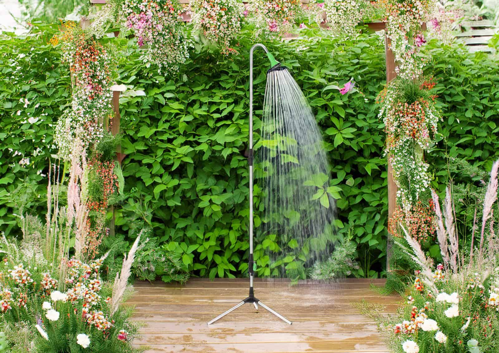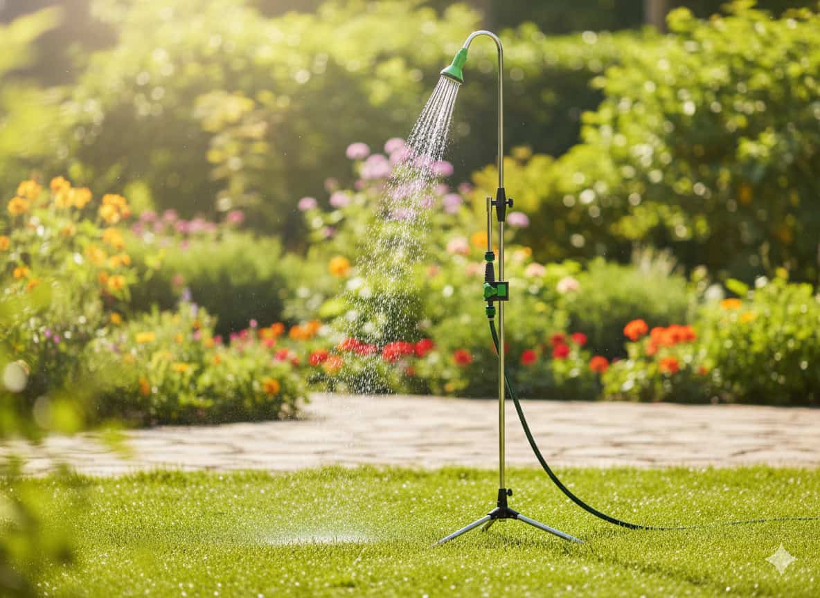 Dus de gradina pe trepied cu conectare la furtun, reglabil pe inaltime, utilizare exterior, 210 cm Mob360