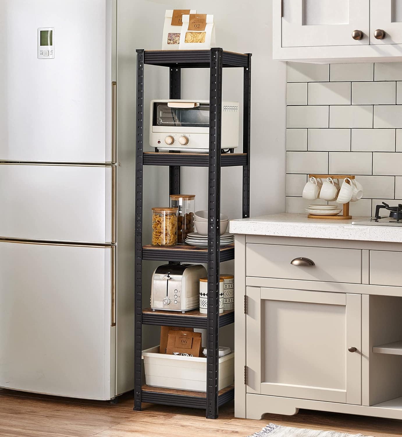 - Etajera SONGMICS cu 5 niveluri este solutia perfecta pentru depozitare robusta si stil vintage. Cu structura din otel si polite MDF ranforsate, sustine pana la 400 kg. Designul modular iti permite sa ajustezi inaltimea rafturilor sau sa folosesti rafturile individual in diferite camere. Caracteristici principale: 5 rafturi solide cu sustinere pana la 80 kg fiecare