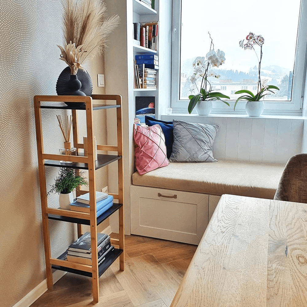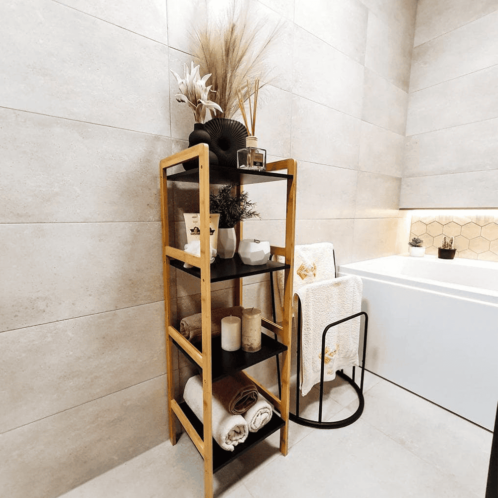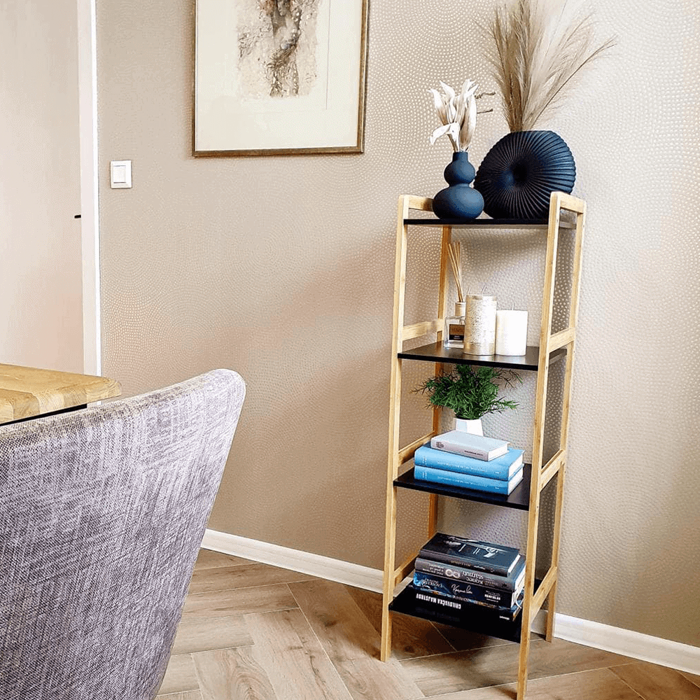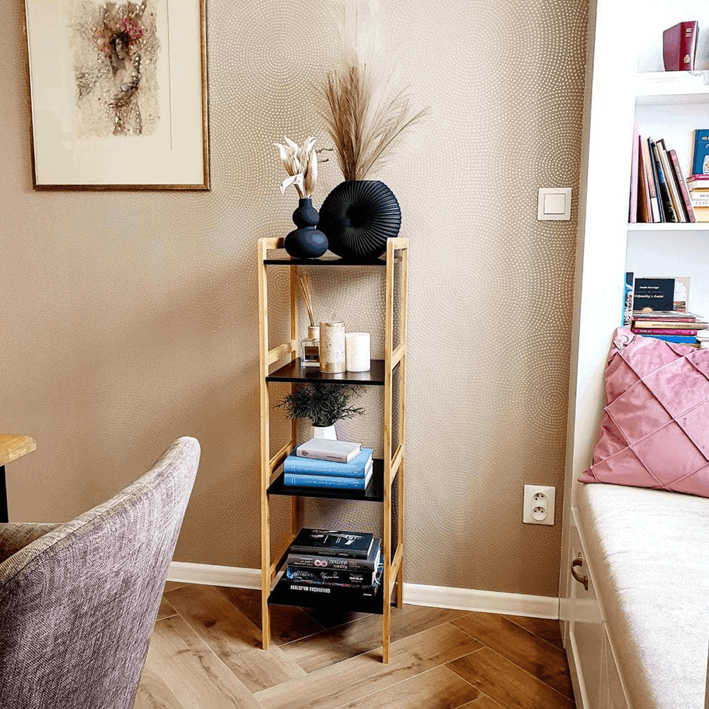 Etajeră cu 4 rafturi, natural / negru, NAOKO