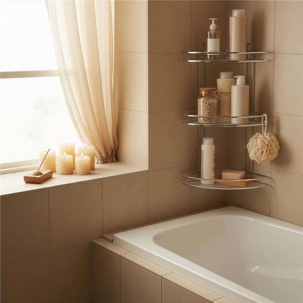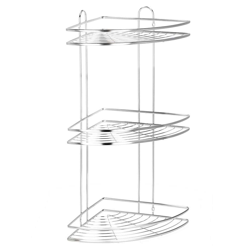Etajera de colt pentru dus, cu 3 polite, montaj pe perete, inox, 25x25x59 cm, argintiu Mob360 – produs disponibil în magazinul Mob360.