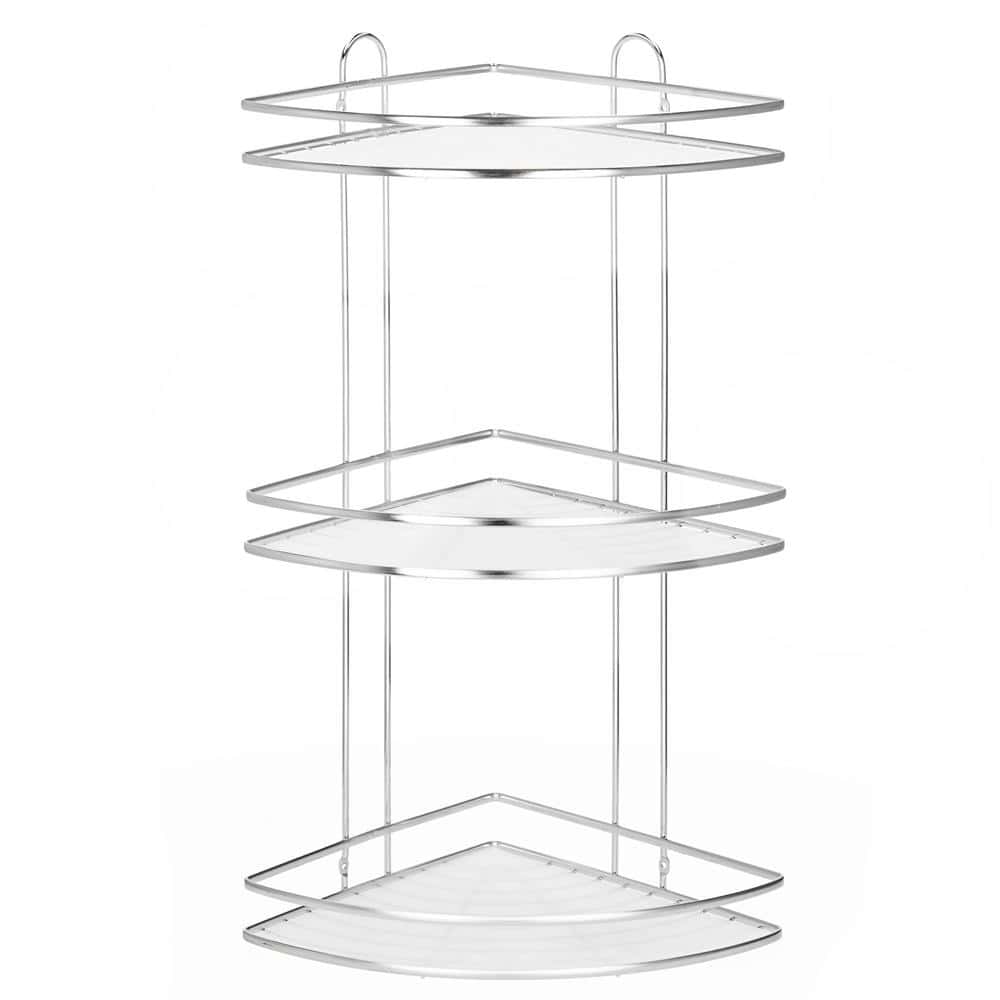 Etajera de colt pentru dus, cu 3 polite, montaj pe perete, inox, 25x25x59 cm, argintiu Mob360