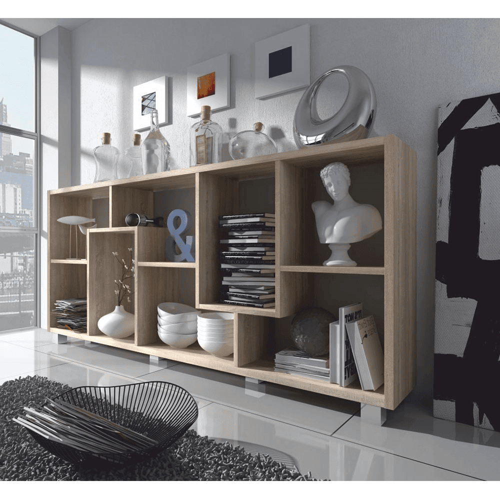 Etajeră multifuncţională ADEN cu finisaj stejar sonoma,