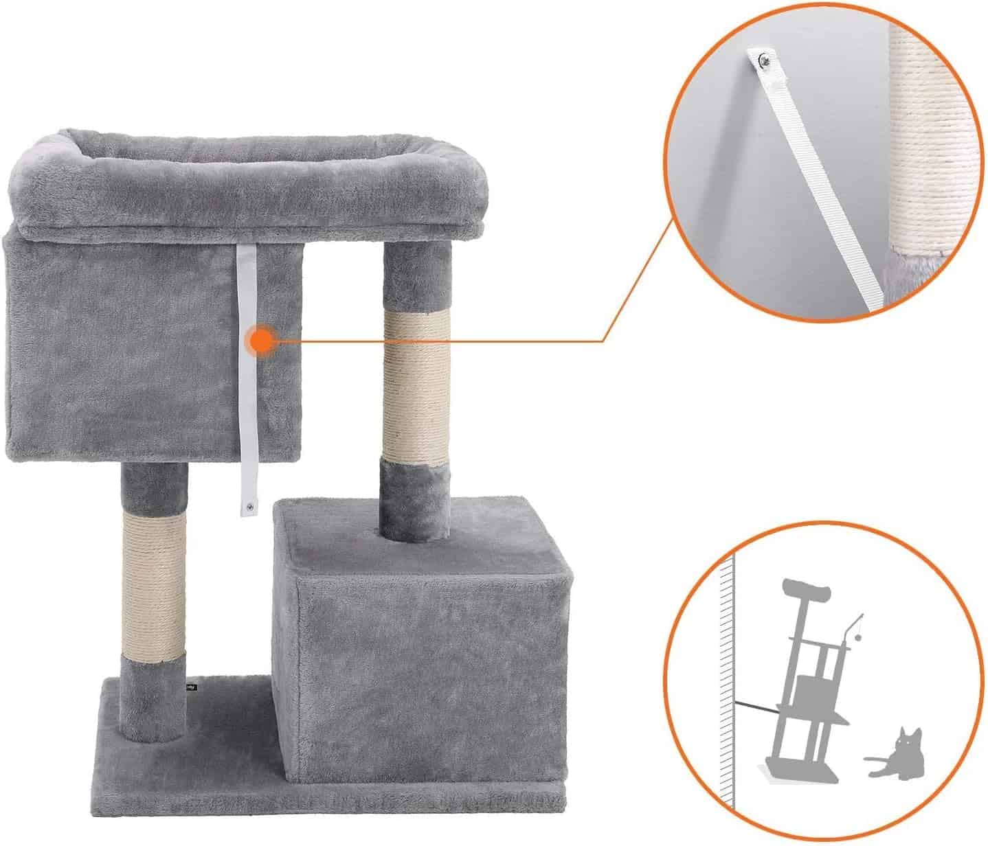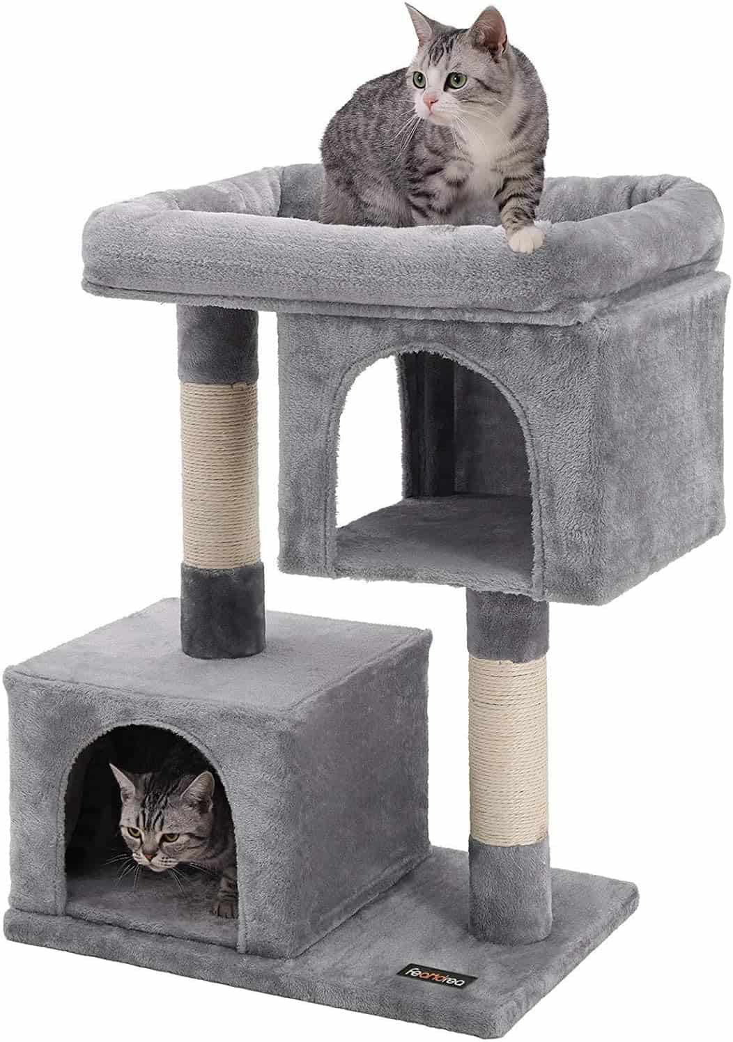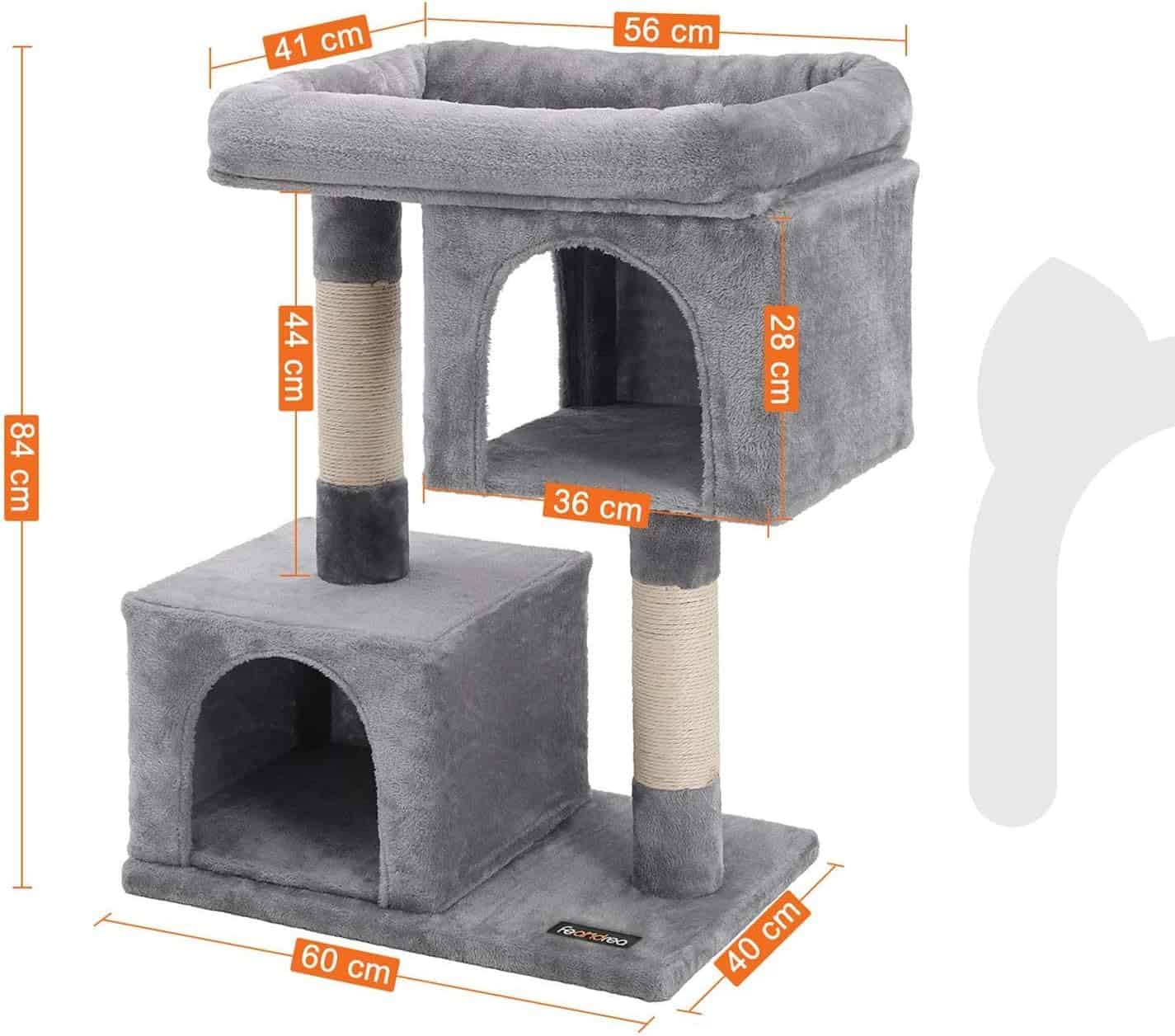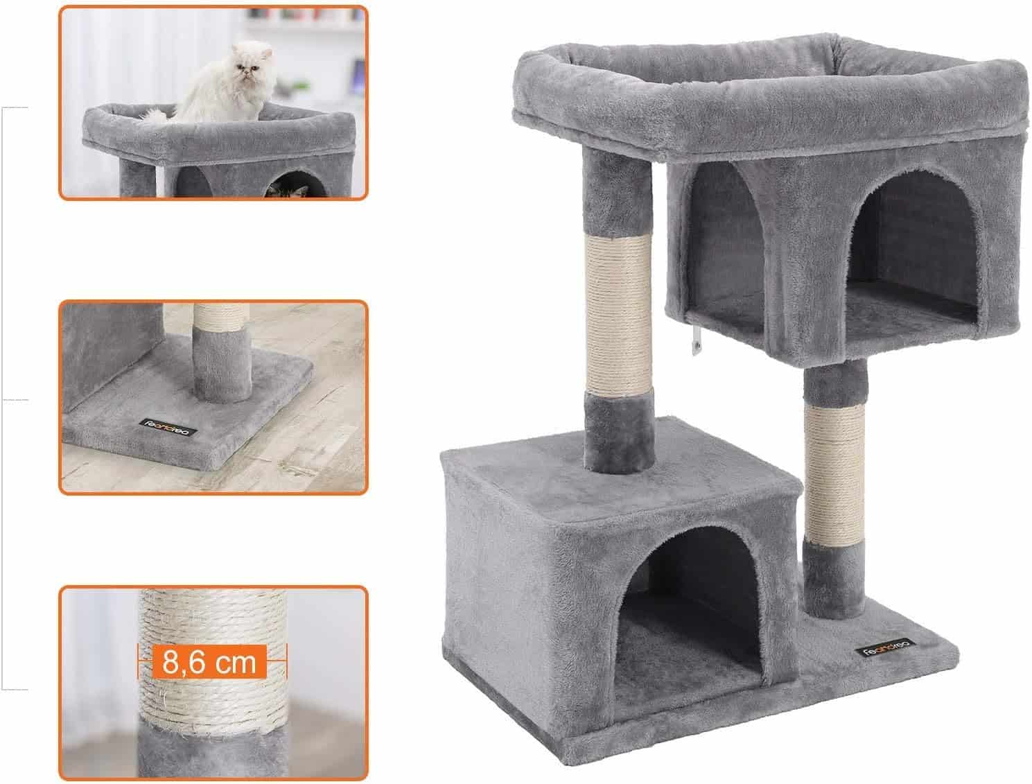FEANDREA Ansamblu de joaca pentru pisici, plus si sisal, 2 ascunzatori si platforma mare, 60x40x84 cm, gri Mob360