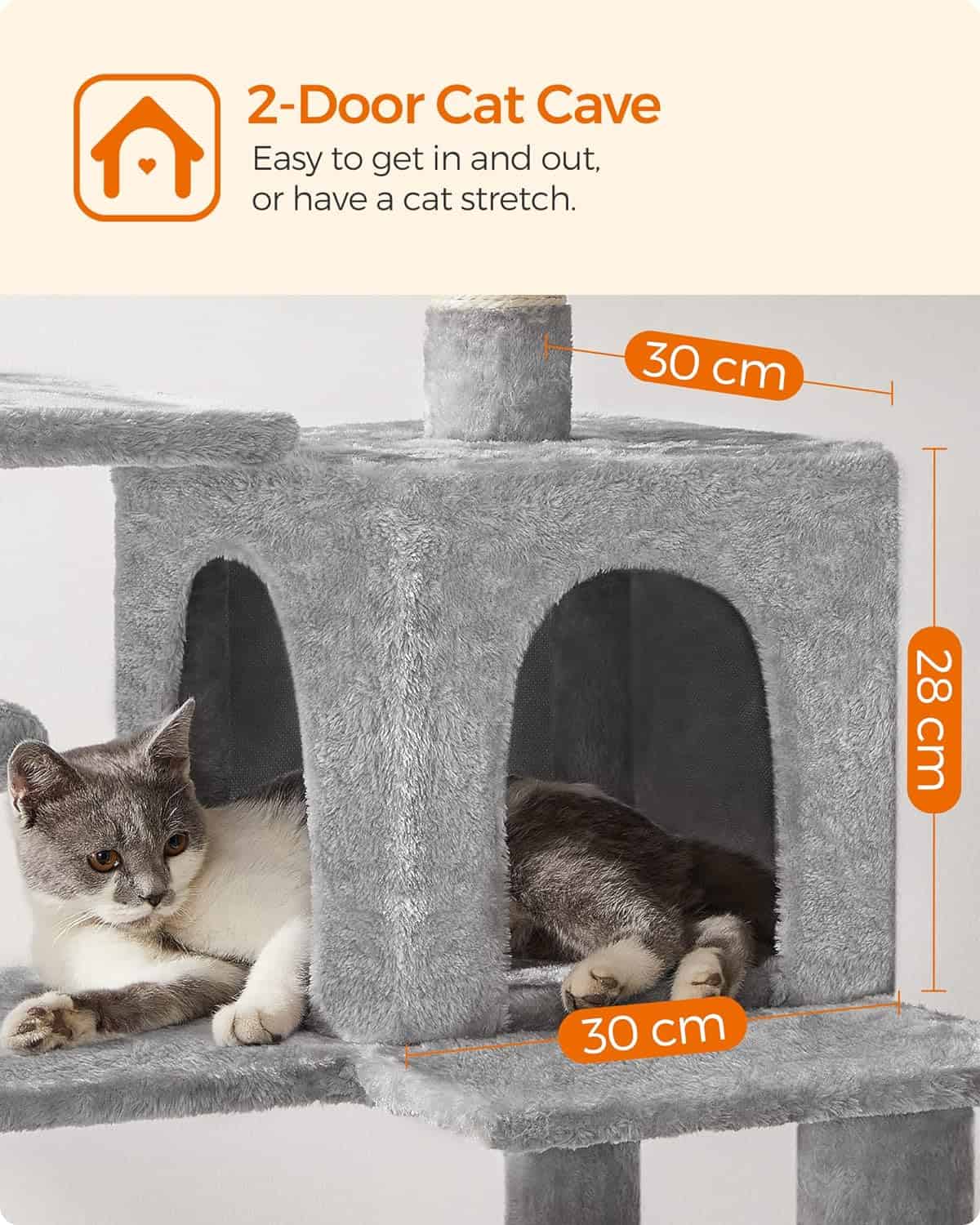 FEANDREA Ansamblu de joaca pentru pisici, tip copac, cu 1 culcus, 1 hamac si ascunzatoare, 55x45x143cm, gri deschis Mob360 – produs disponibil în magazinul Mob360.