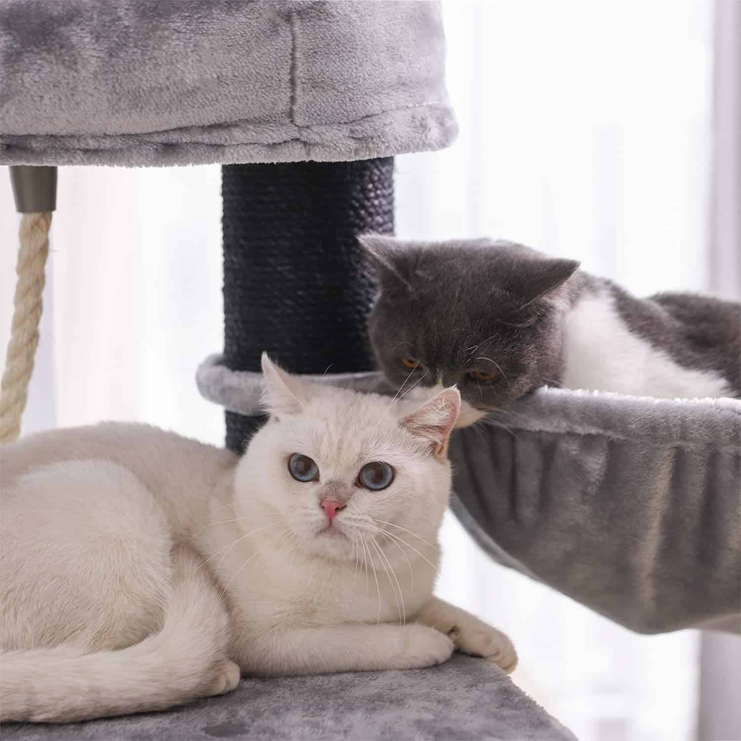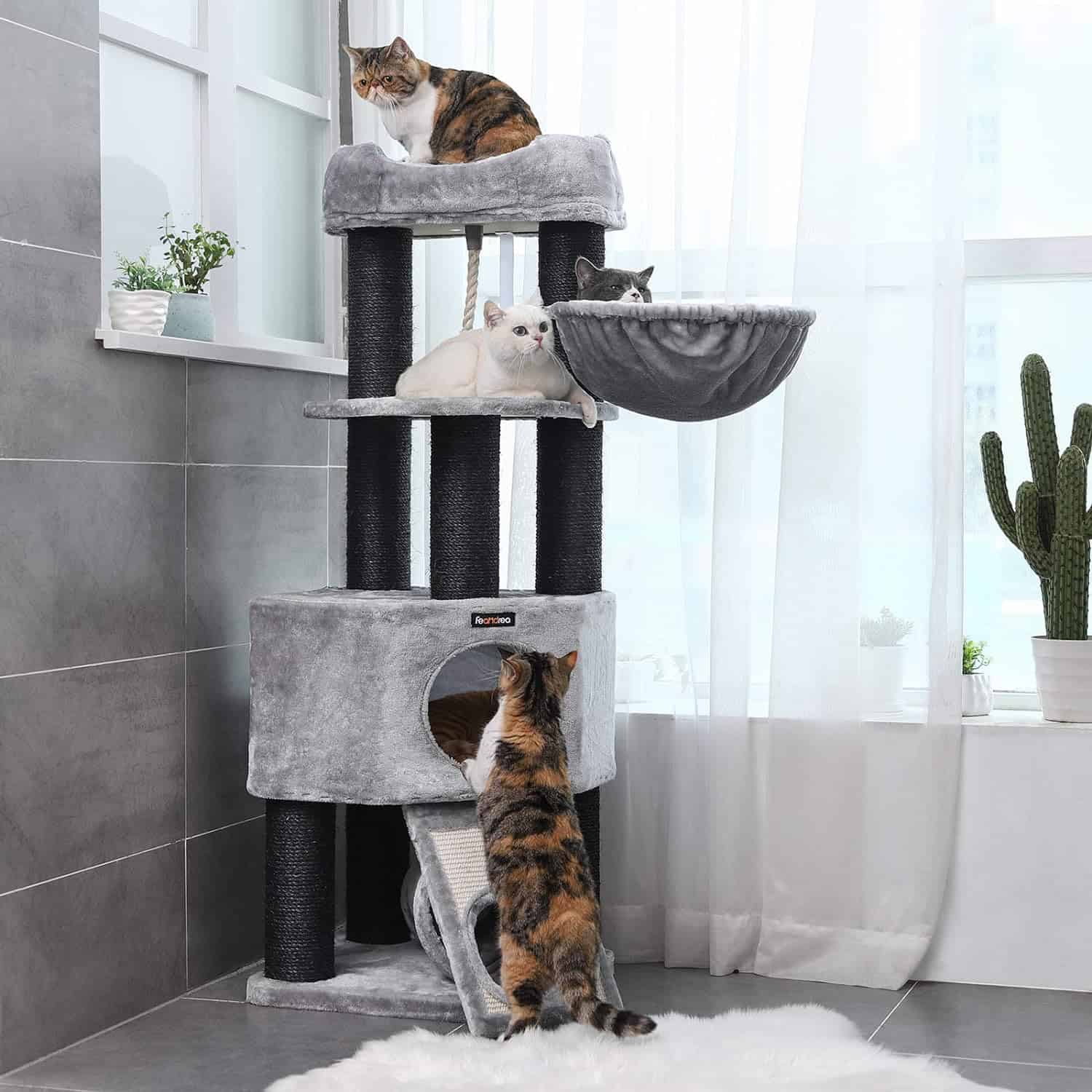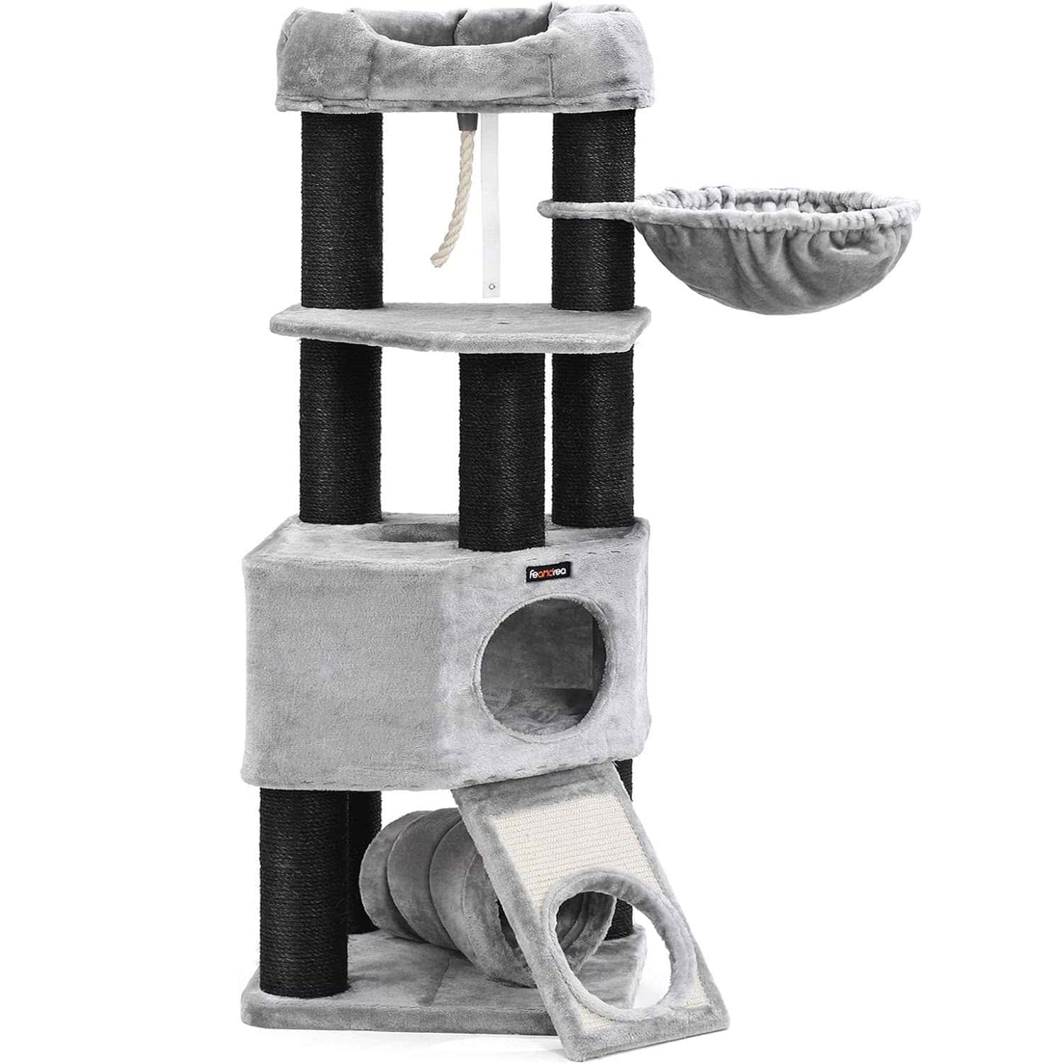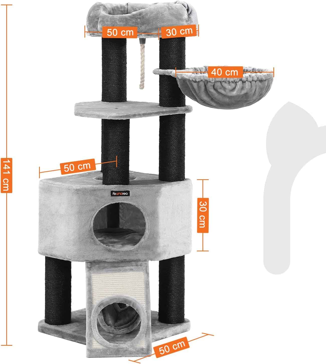 FEANDREA Ansamblu de joaca pentru pisici, tip copac, cu 2 culcusuri si 2 ascunzatoare, 50x50x141cm, gri Mob360 este disponibil în magazinul Mob360.