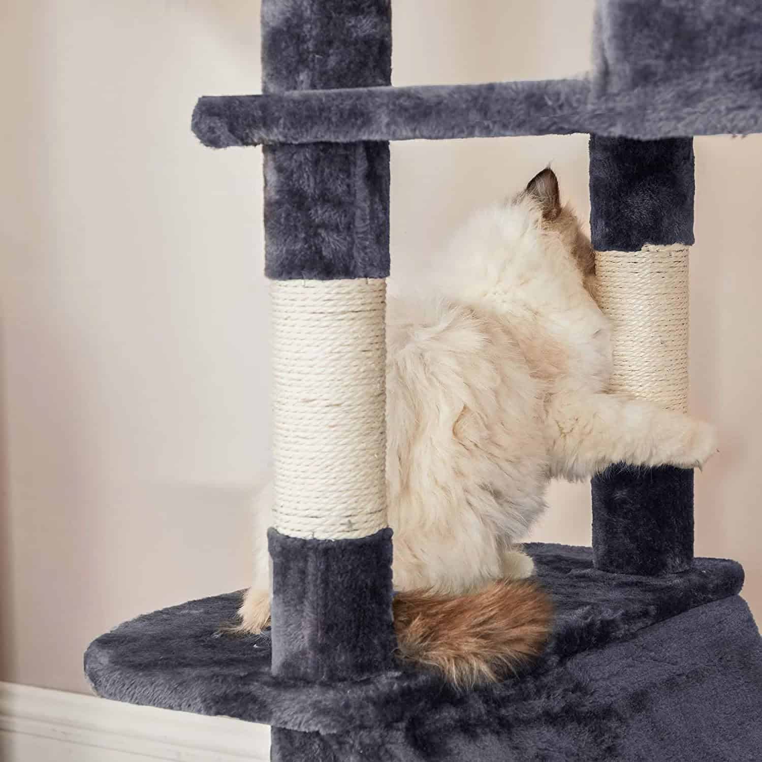 FEANDREA Ansamblu de joaca pentru pisici, tip copac, cu 3 culcusuri, hamac si 2 ascunzatoare, 60x50x206cm, gri inchis Mob360 – produs disponibil în magazinul Mob360.