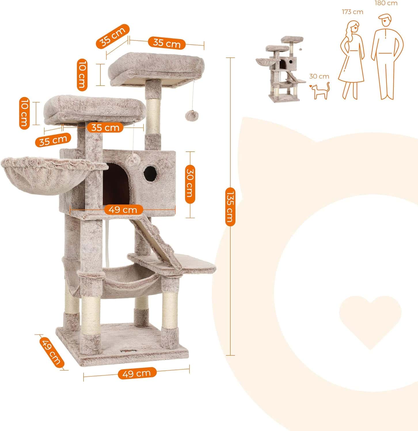 Acest ansamblu de joaca pentru pisici inalt de 135 cm este acoperit cu plus de 500 g/m² (mai moale, mai dens si mai pufos) pentru ca pisica dvs.