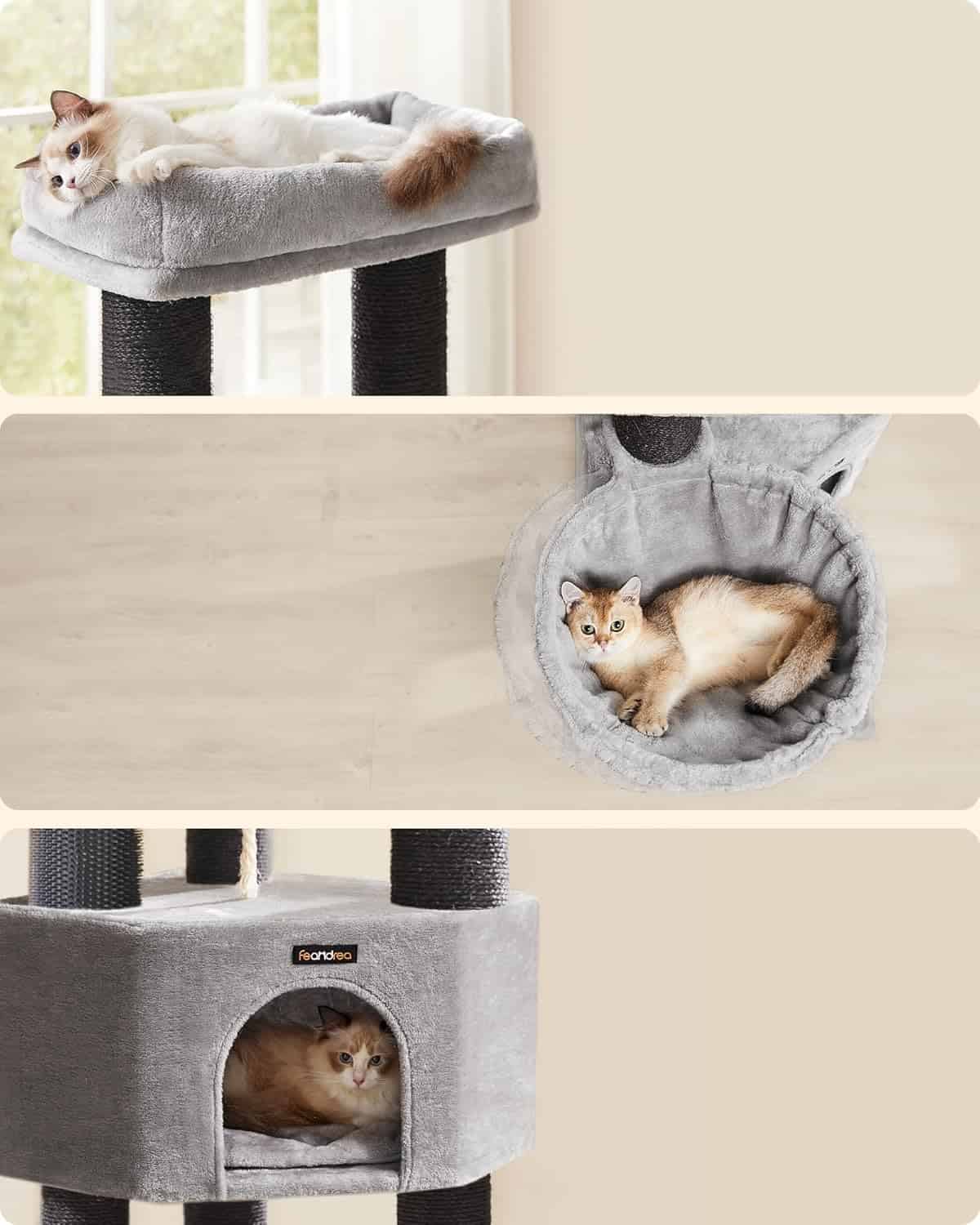 FEANDREA Ansamblu de joaca pisici, cu 9 stalpi de sisal, platforme mari si casuta, 50x50x160 cm, gri Mob360 – produs disponibil în magazinul Mob360.