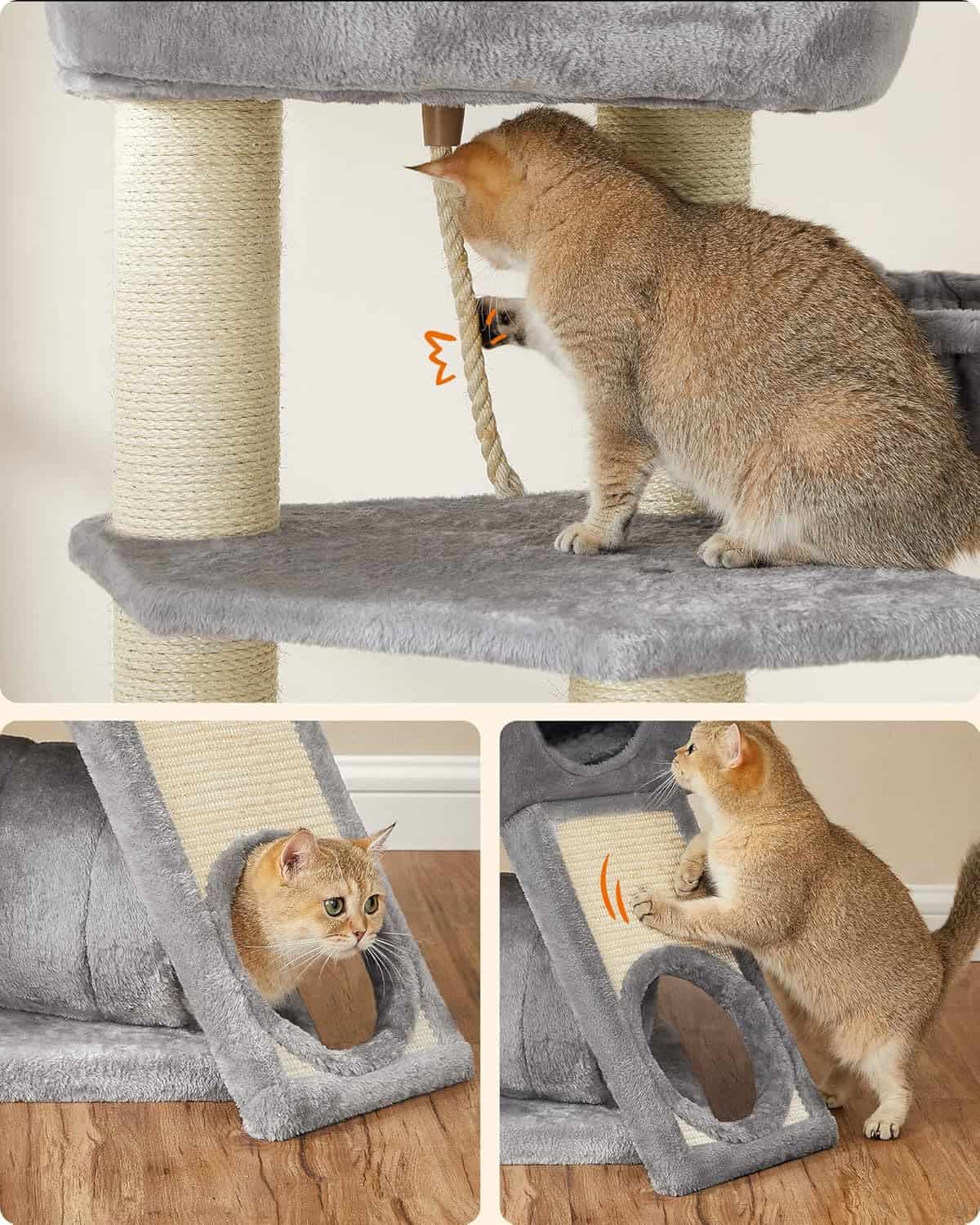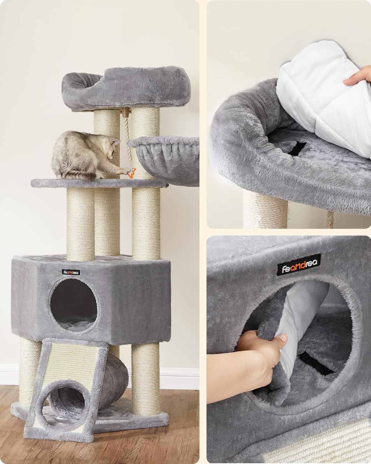 FEANDREA Ansamblu de joaca pisici, tip copac, pentru pisici de dimensiuni mari, 50x50x141 cm, gri Mob360