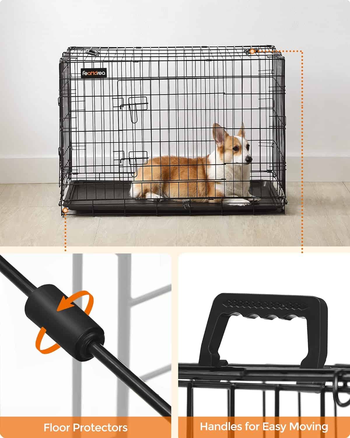 FEANDREA Cusca pentru animale, 2 usi, pliabila din metal, tava detasabila, L, 93x58x64cm, negru Mob360