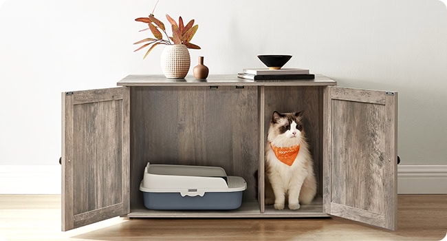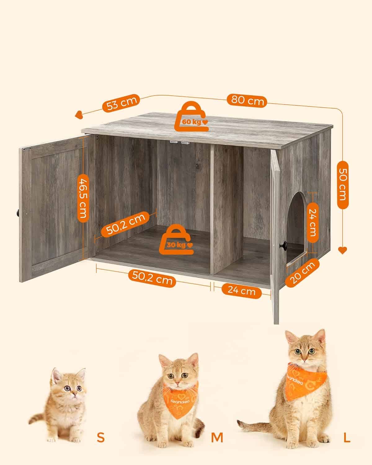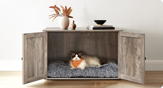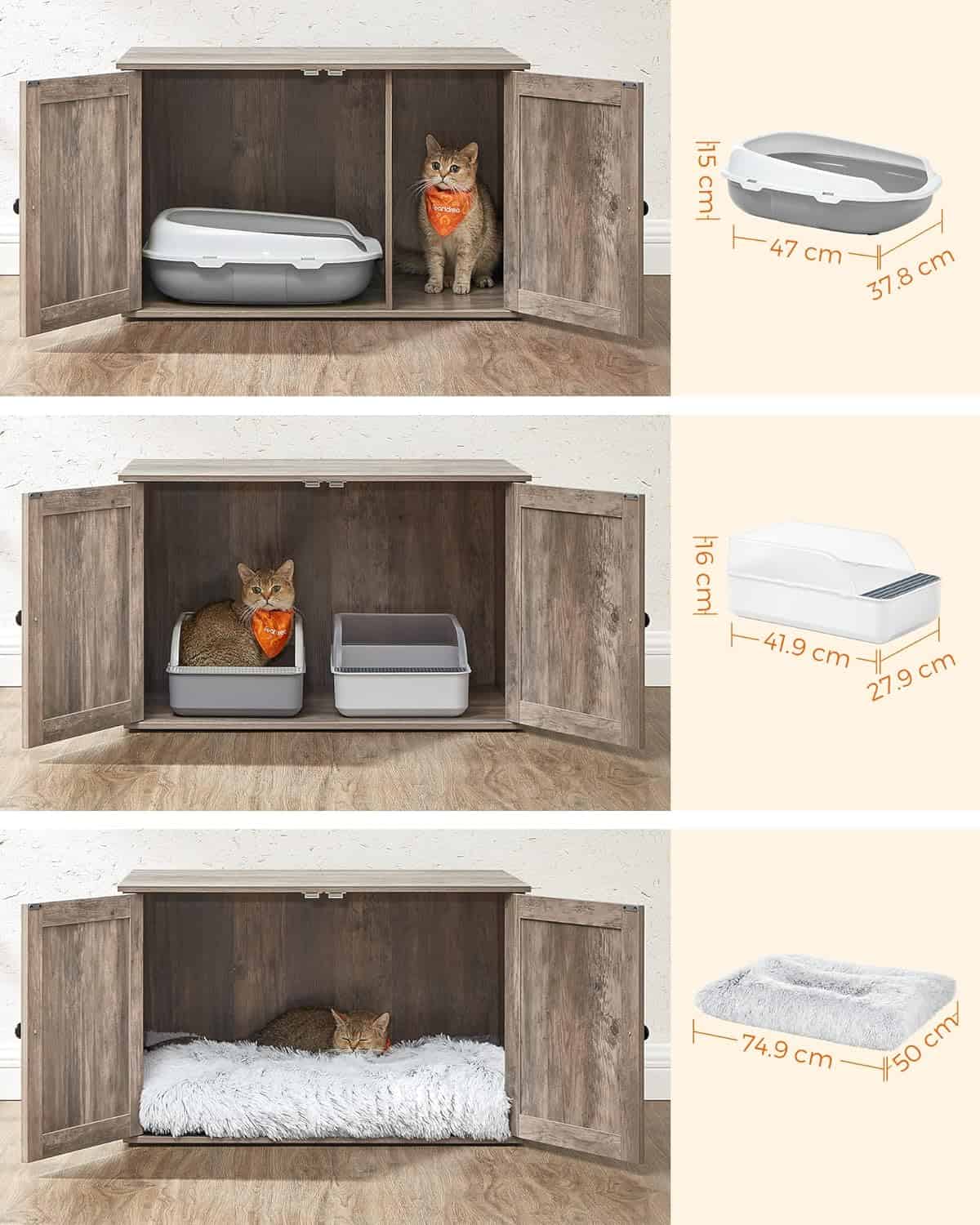 FEANDREA Cusca pentru pisici tip comoda, cu usi si perete despartitor, 80x53x50cm, gri Mob360