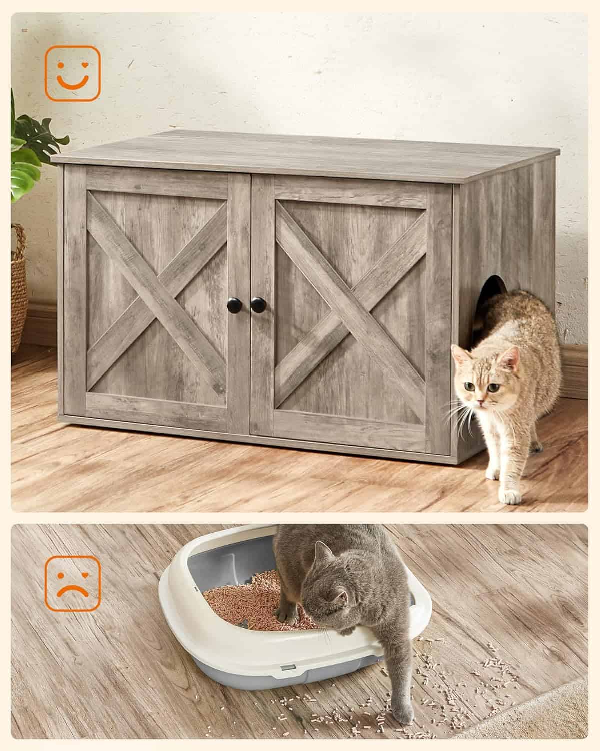 - Litierele nu sunt frumoase? Miros urat? Iata cum sa rezolvi asta: o cutie pentru ascunderea litierei, care reduce mirosurile neplacute, impiedica imprastierea nisipului pe podea si ofera pisicilor tale putina intimitate.