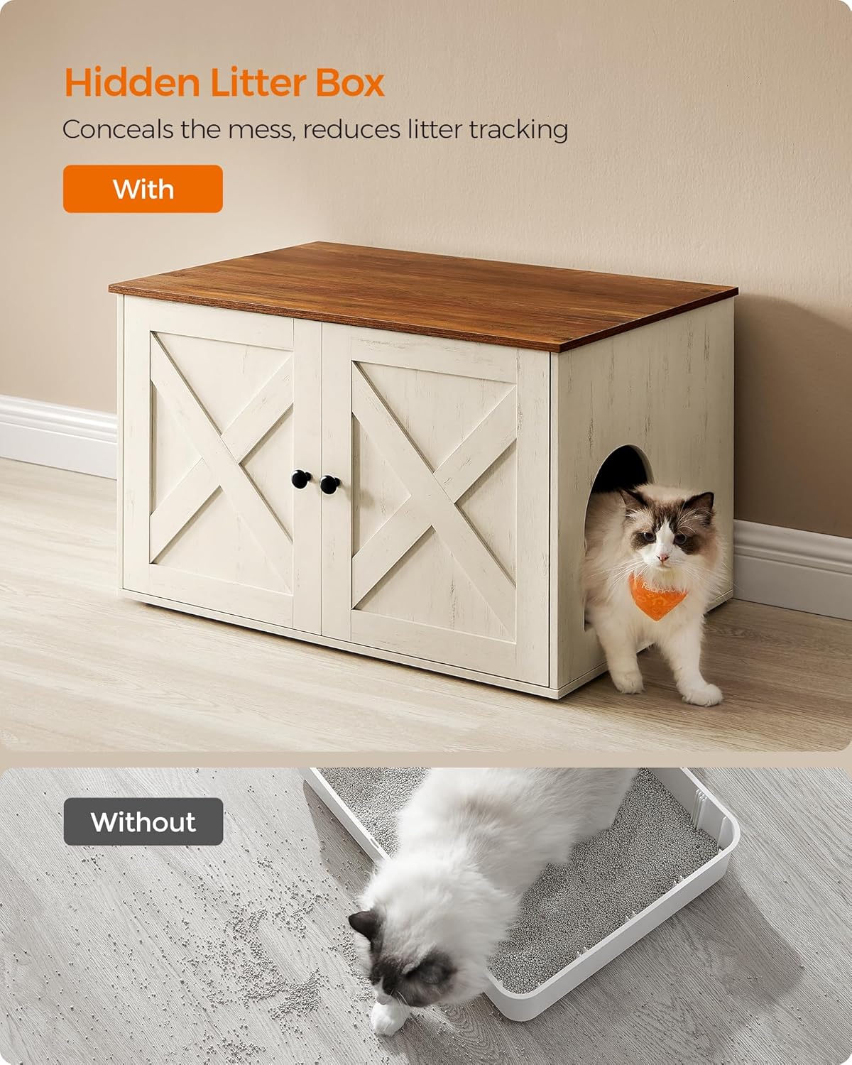 FEANDREA Litiera mascata tip mobilier cu usi model hambar, compartiment cu separator, 80x53x50 cm, alb Mob360 – produs disponibil în magazinul Mob360.