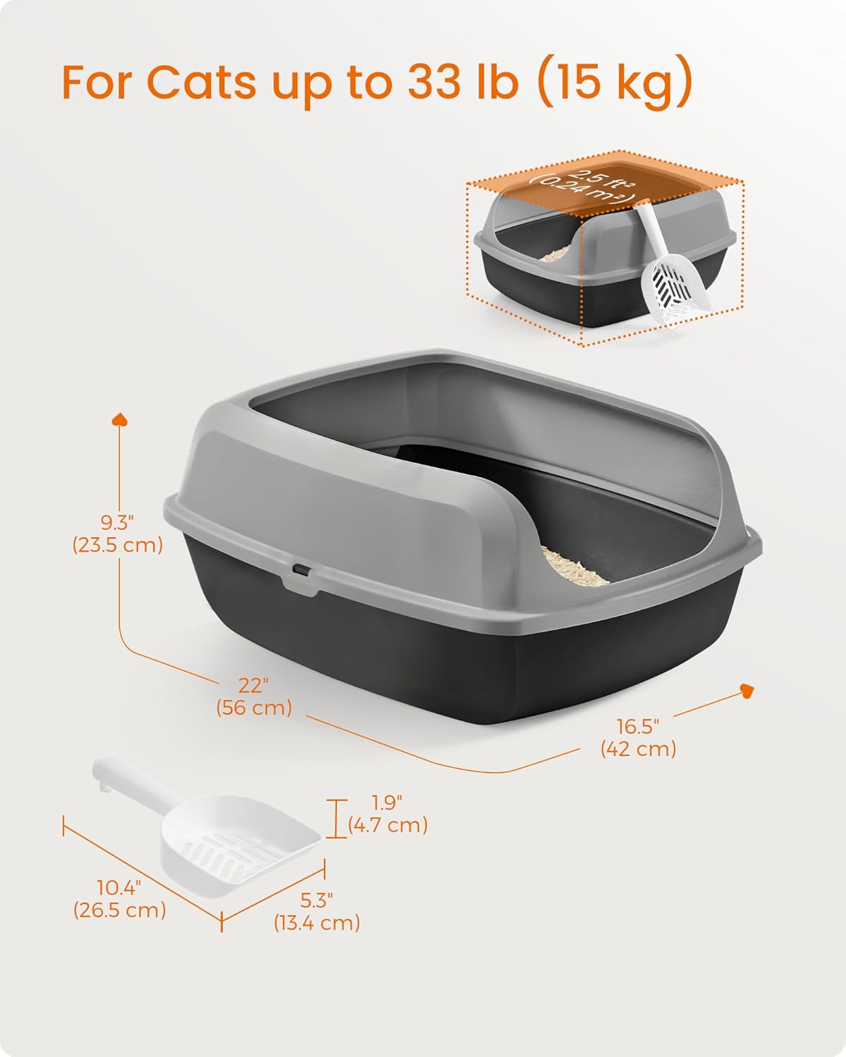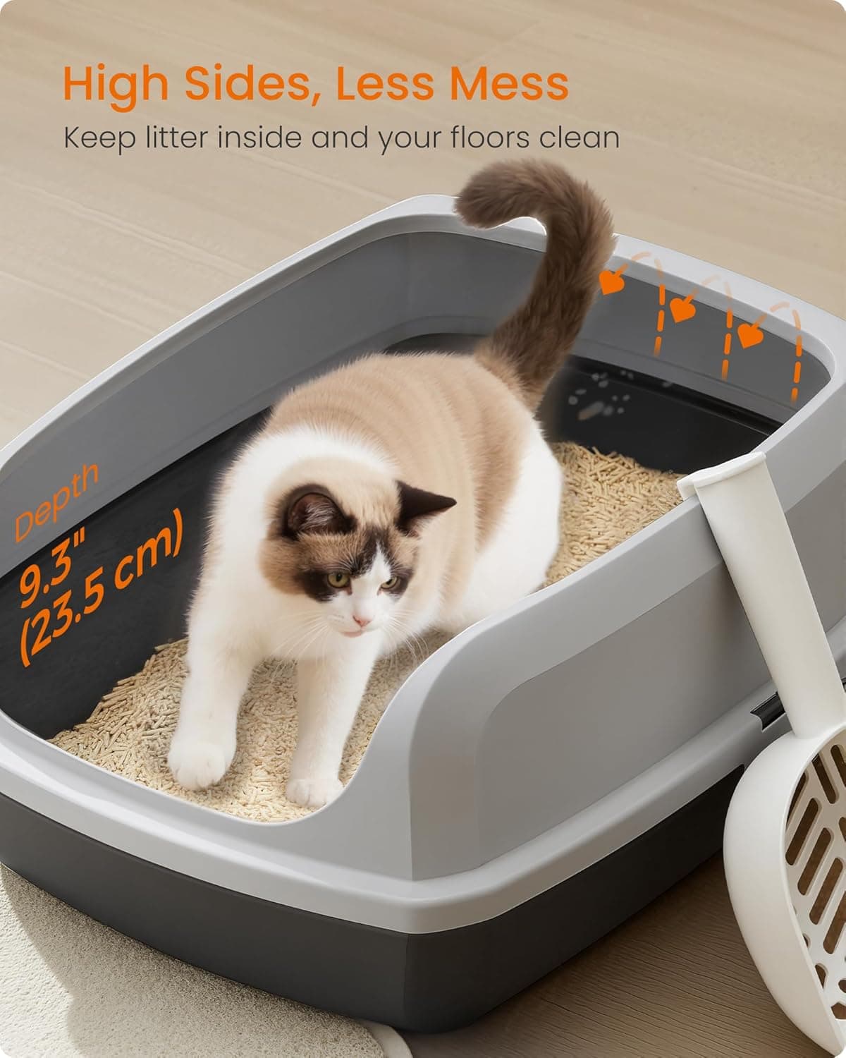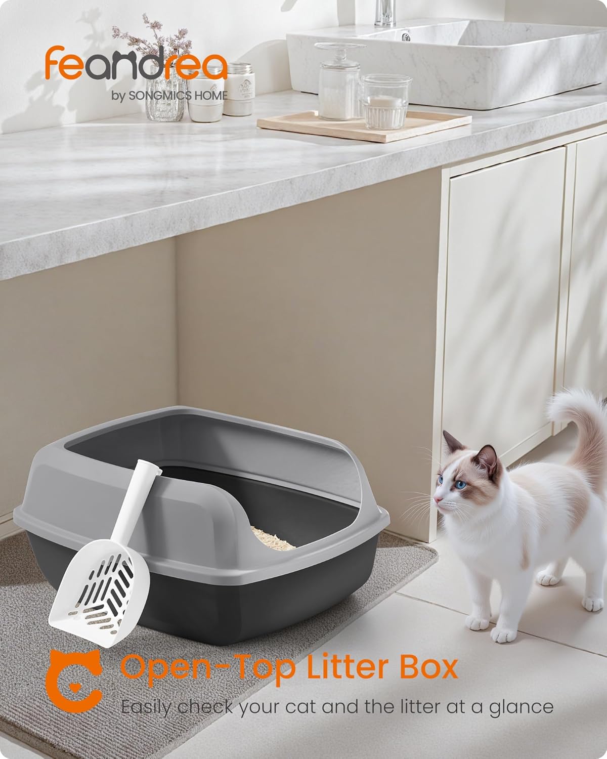 FEANDREA Litiera pisici deschisa, cu margini inalte si lopatica, dimensiune XL, 56x42x24 cm, gri Mob360
