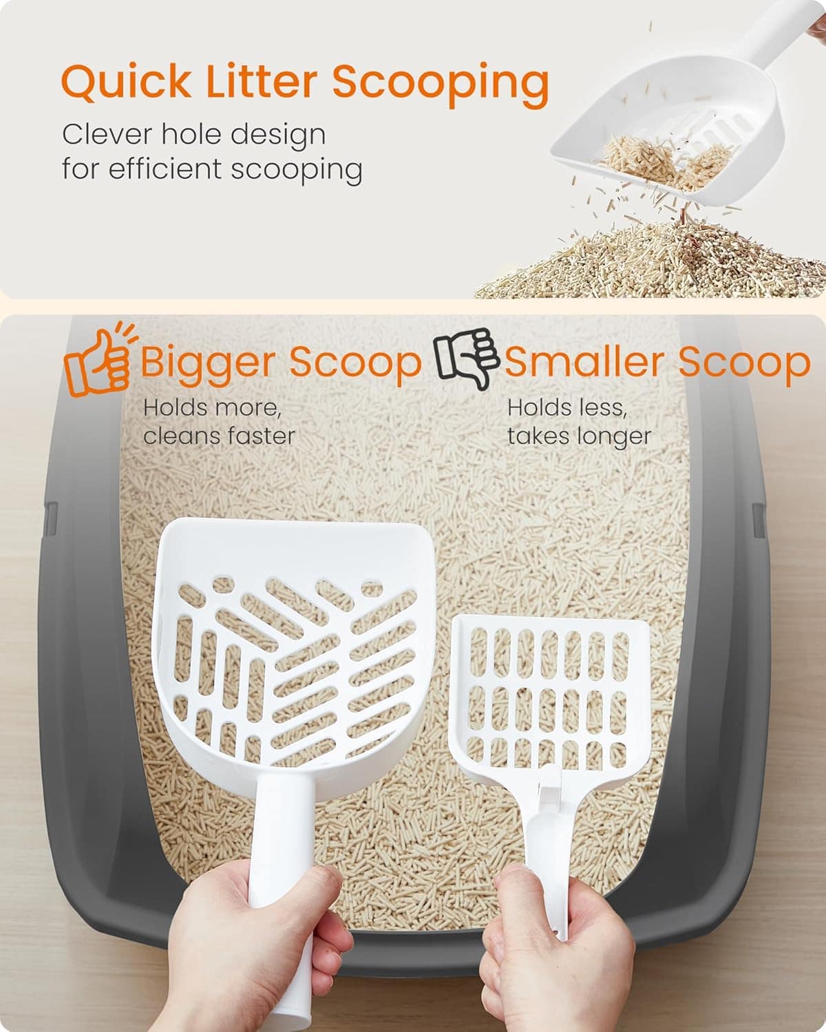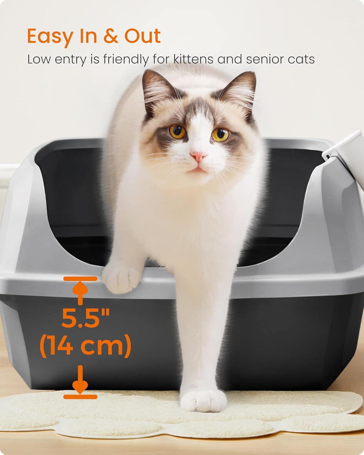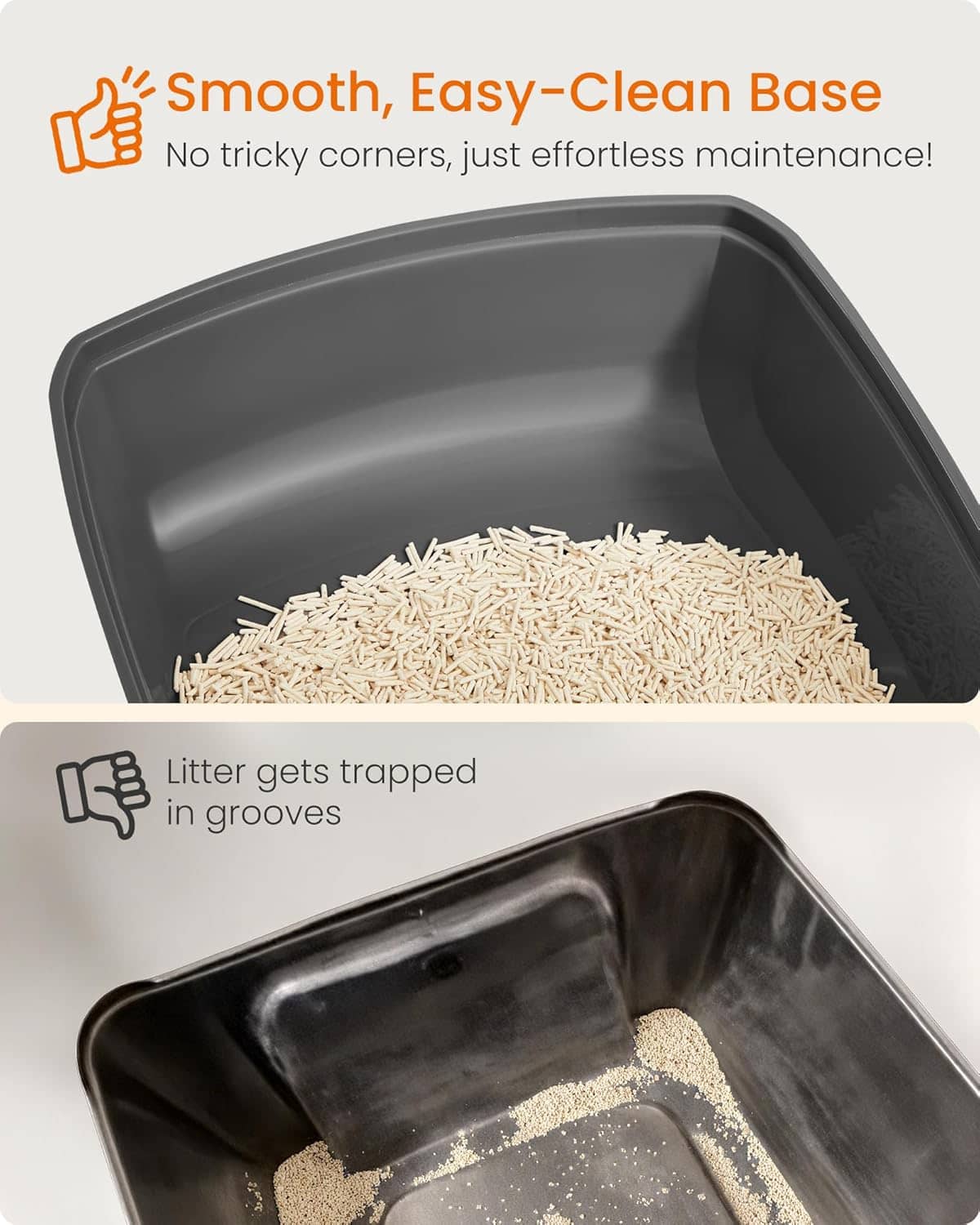 FEANDREA Litiera pisici deschisa, cu margini inalte si lopatica, dimensiune XL, 56x42x24 cm, gri Mob360