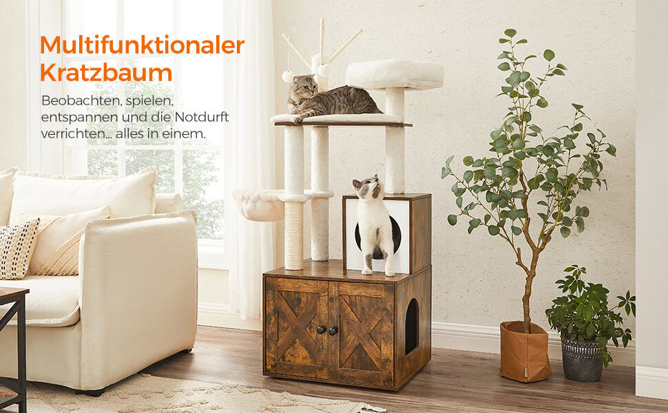 FEANDREA Mobilier 2 in 1 pentru pentru pisici cu cusca, ascunzatoare si loc de joaca, 58x50x140cm, maro vintage Mob360 este disponibil în magazinul Mob360.