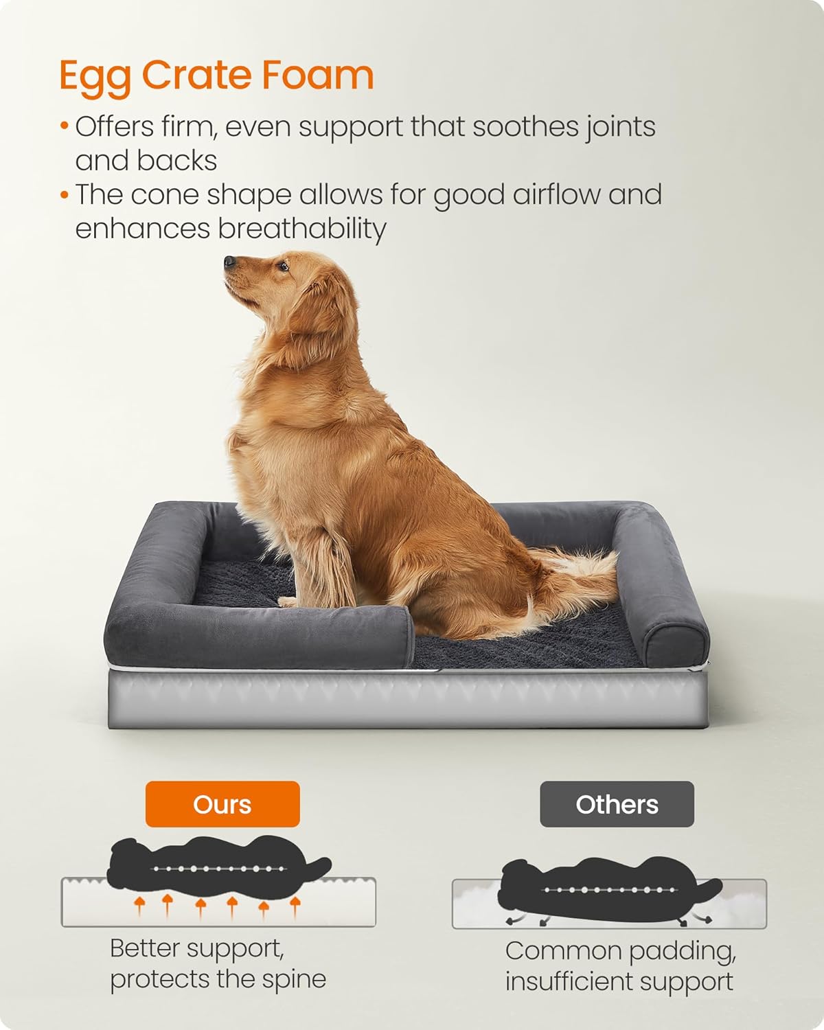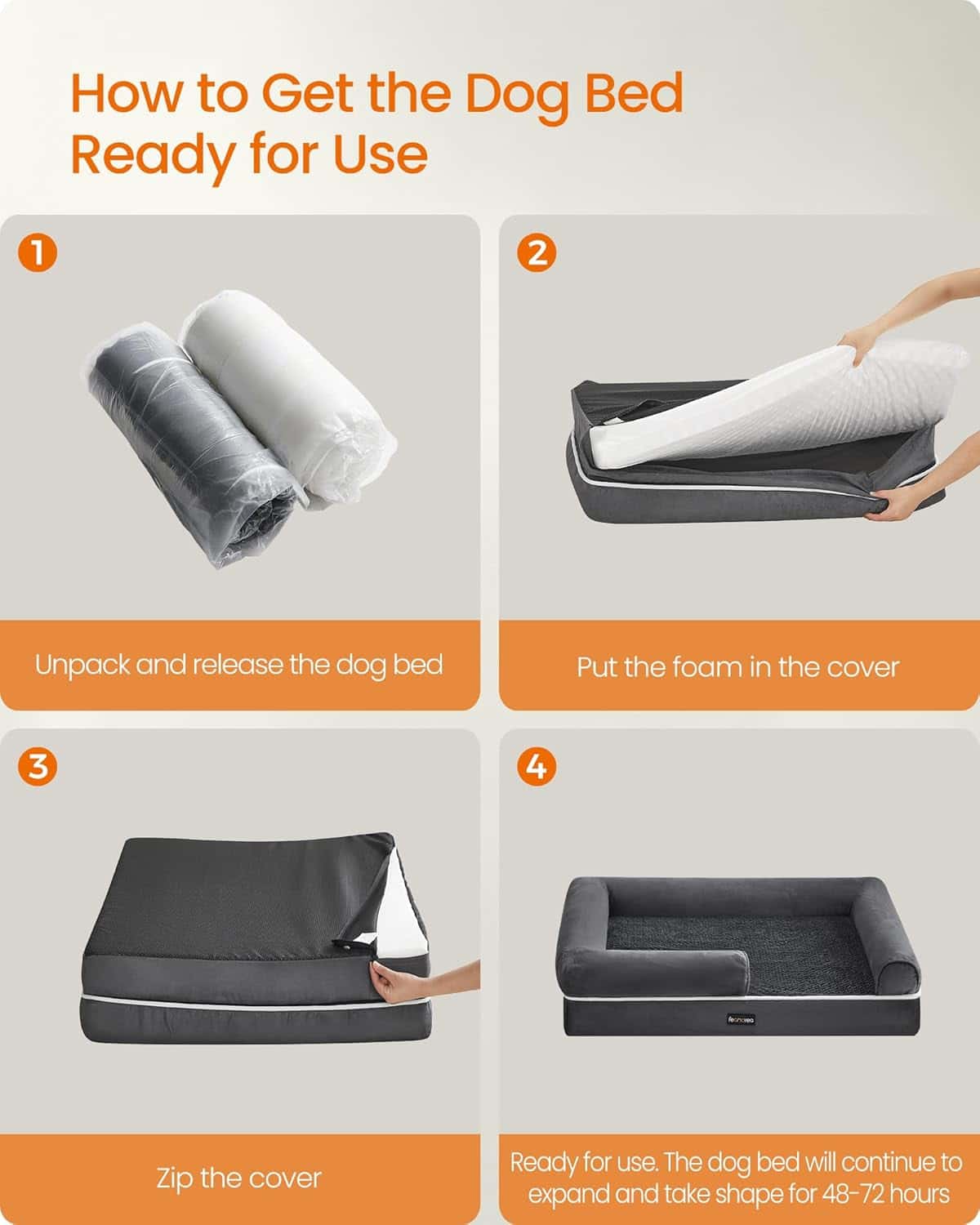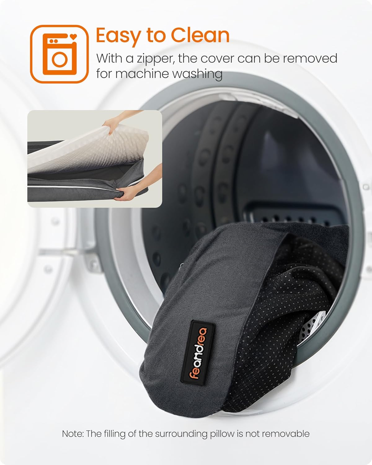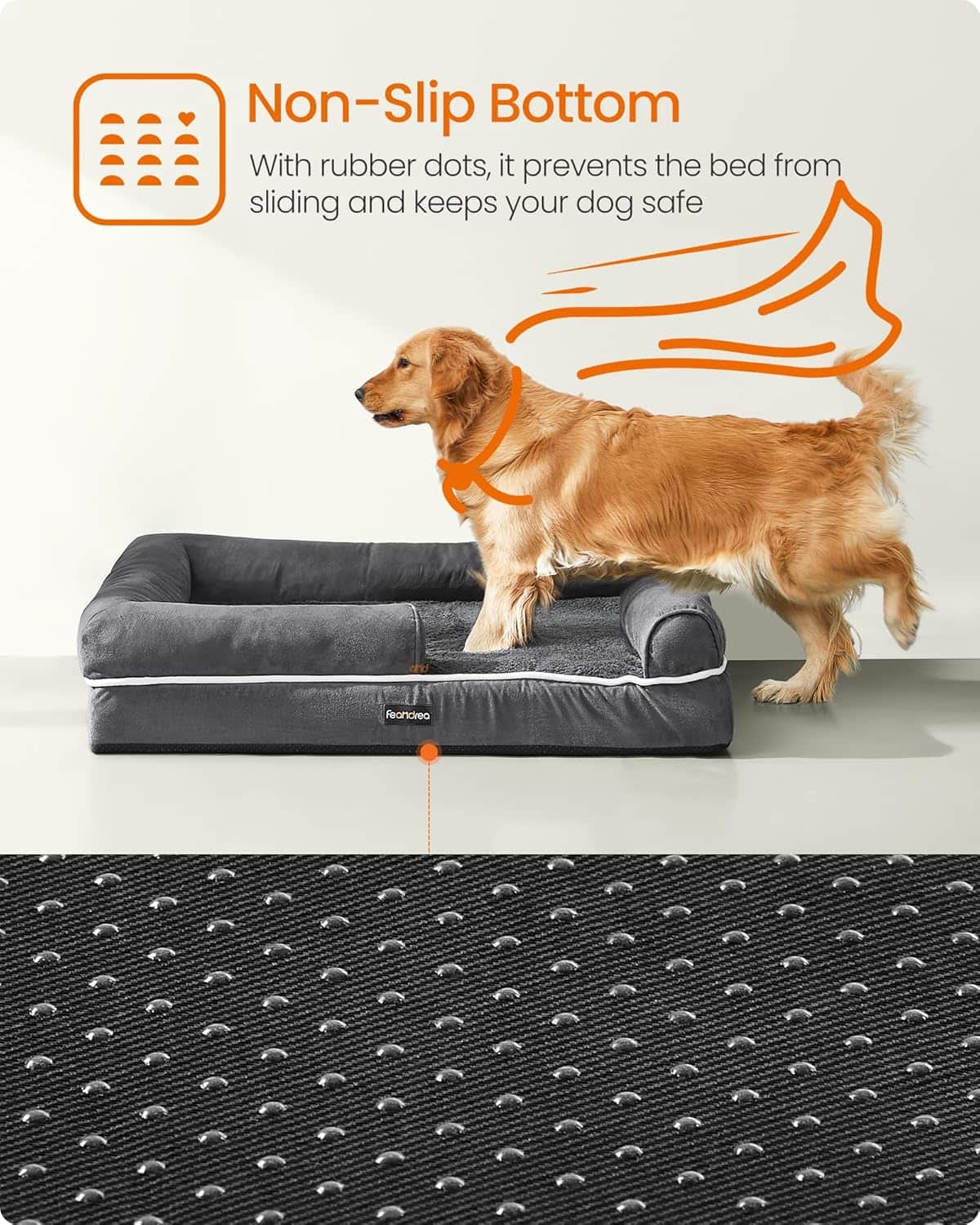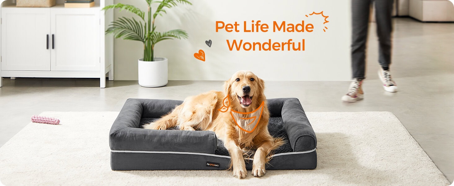 FEANDREA Pat ortopedic pentru caini, cu margini inaltate si husa detasabila, 106x80x20 cm, gri inchis Mob360