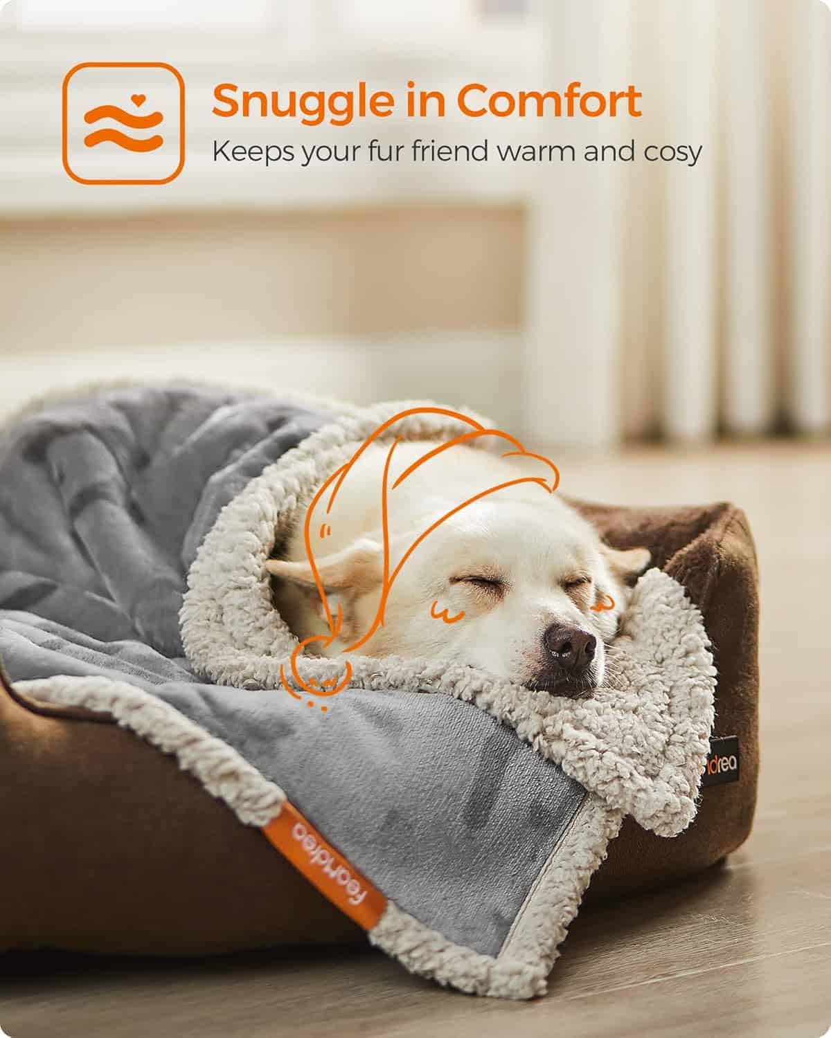 FEANDREA Patura impermeabila pentru caini si pisici, fleece dublu, 101×73 cm, gri Mob360