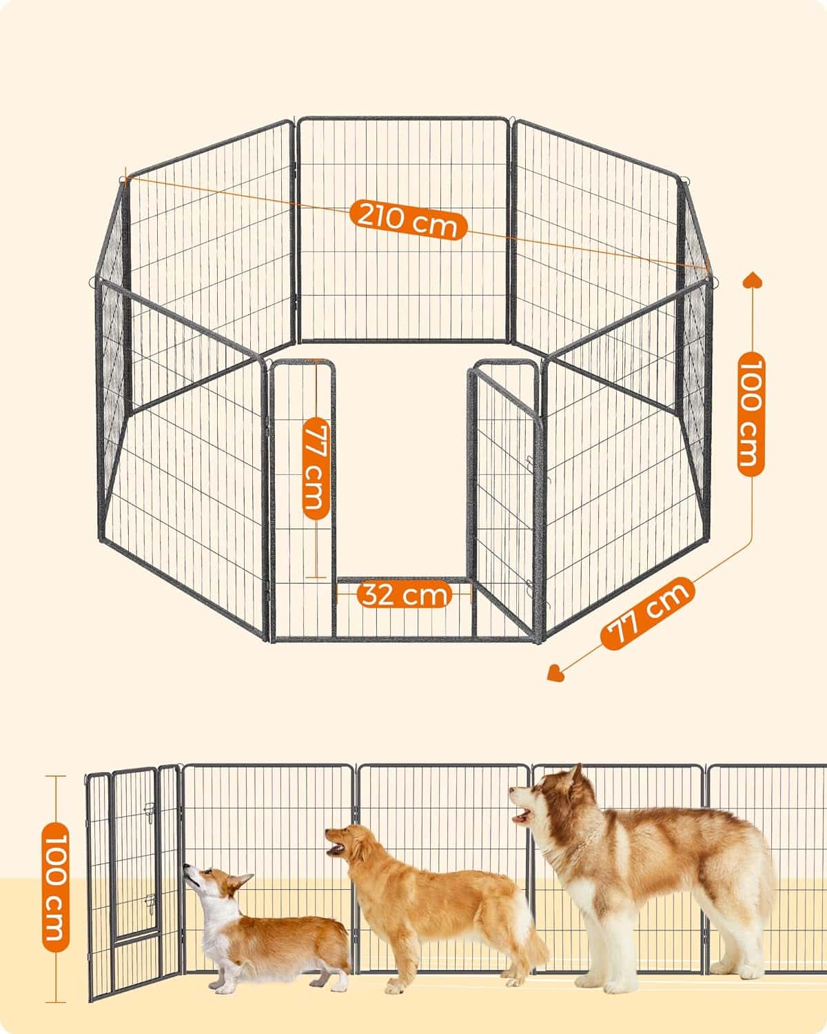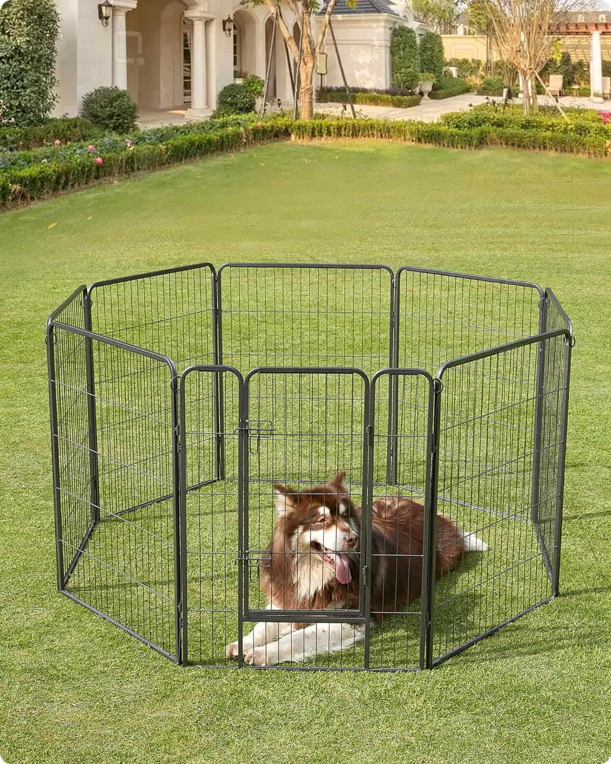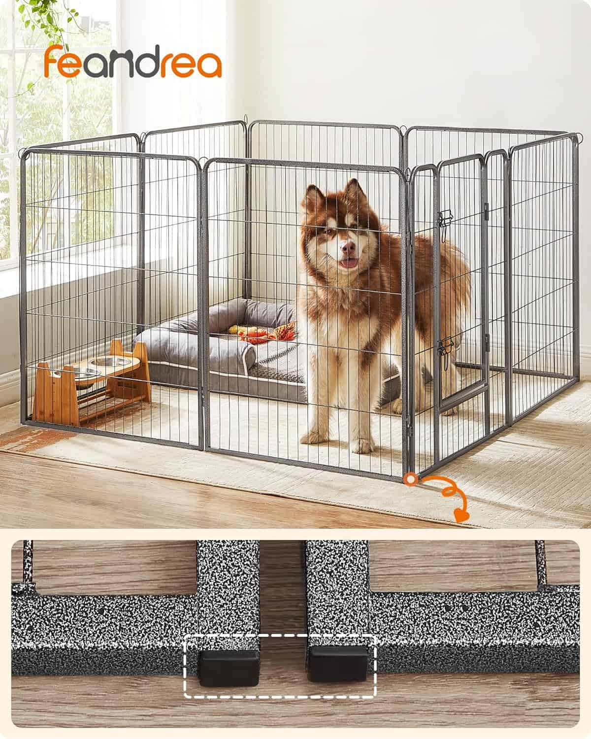 FEANDREA Tarc din panouri de fier pentru caini de talie foarte mare, cu usa de acces, 157x157x100cm, gri Mob360