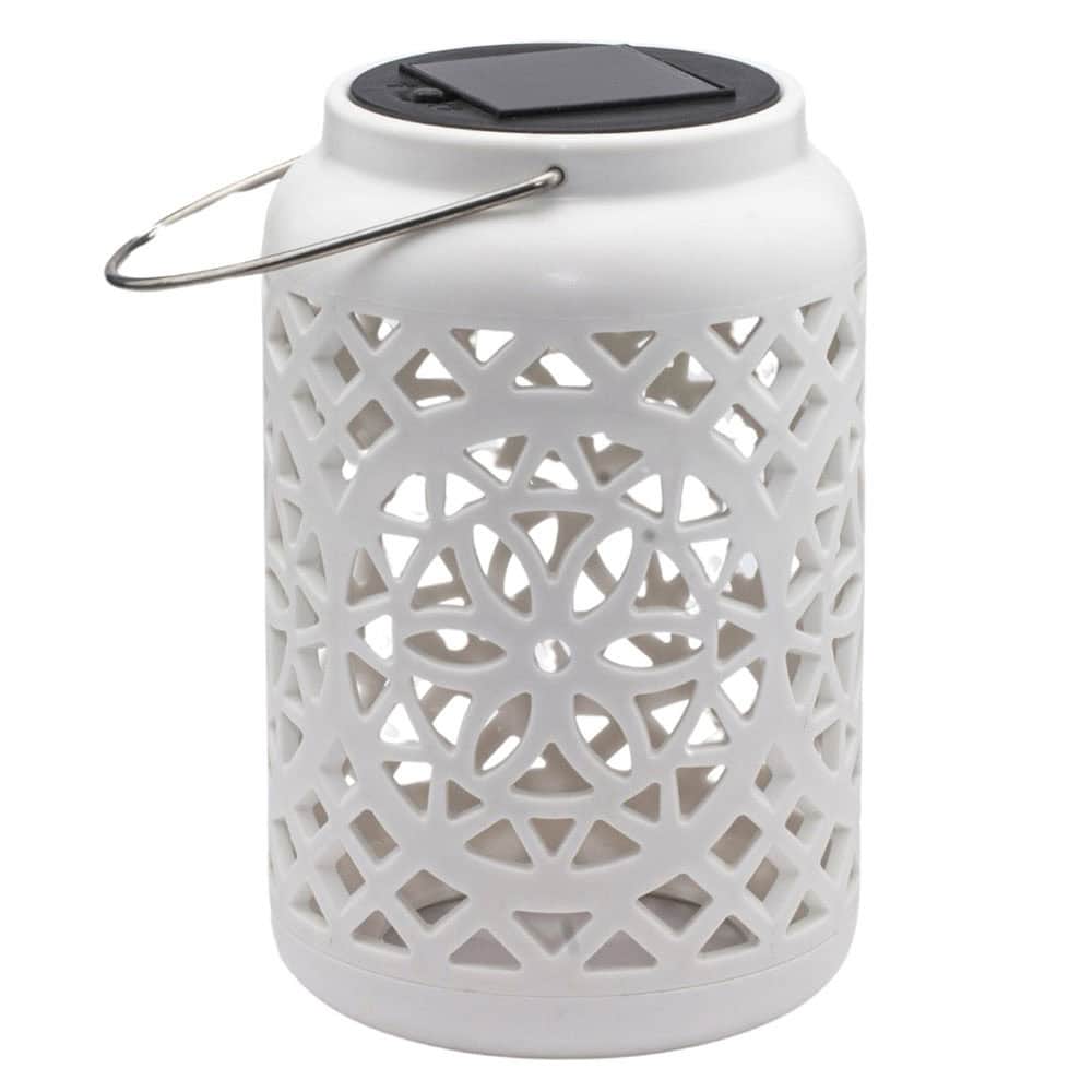 Felinar decorativ solar, LED, pentru exterior, 12x12x18.5cm, alb Mob360