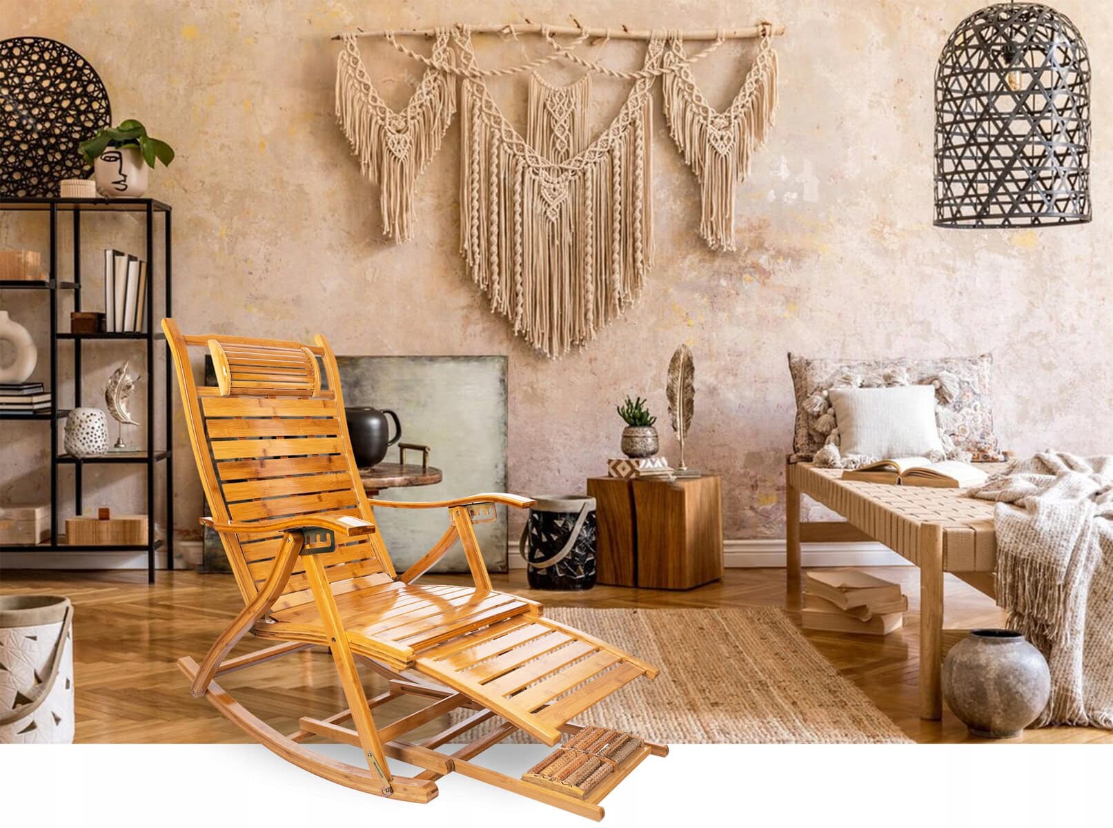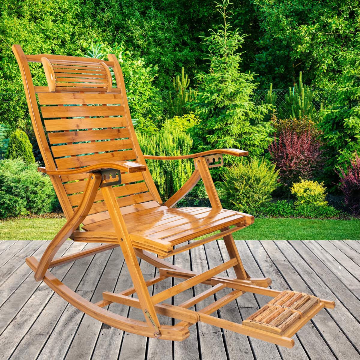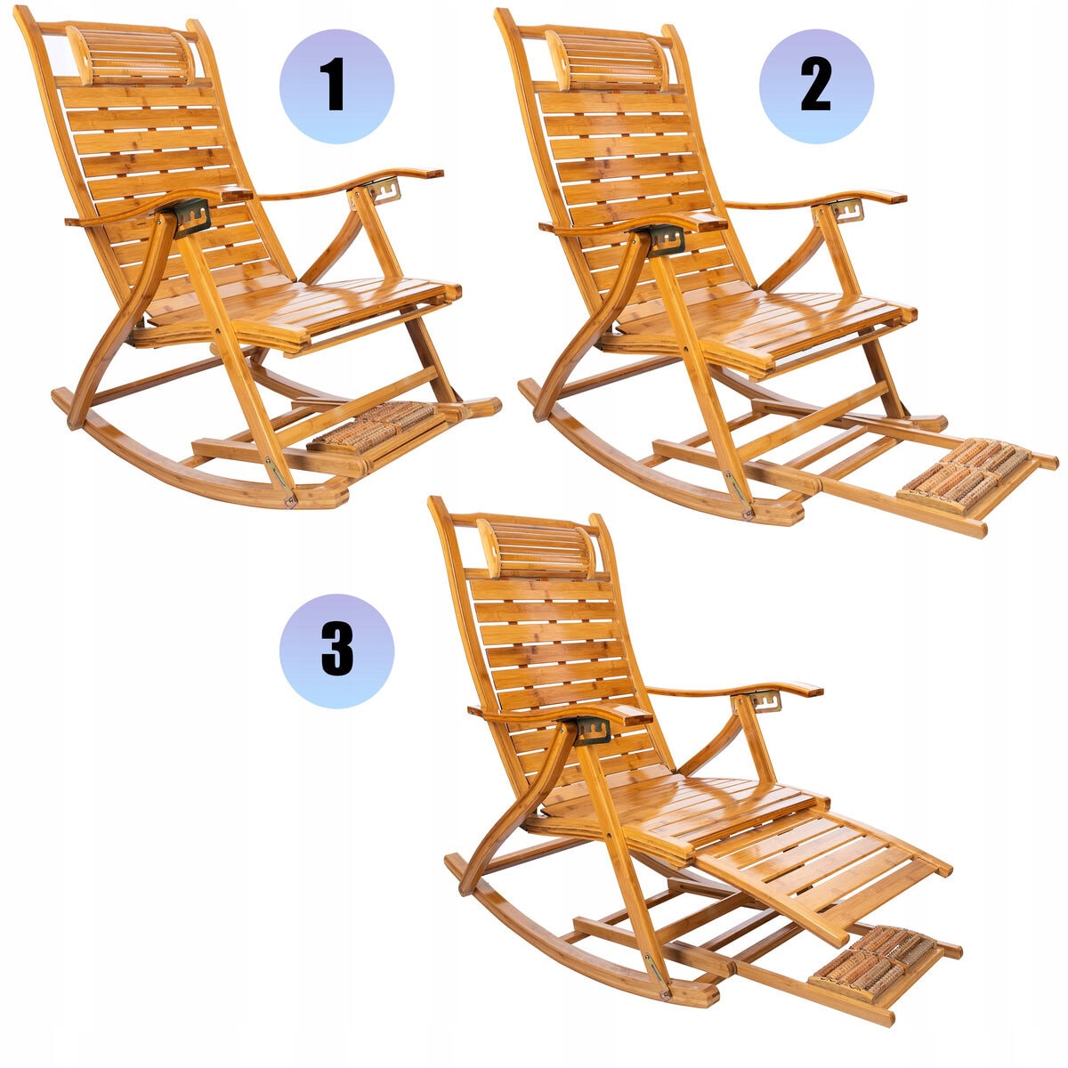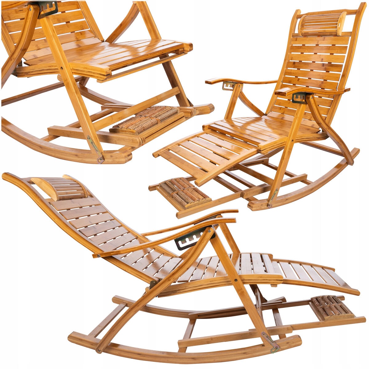 Fotoliu balansoar multifunctional, reglabil 5 pozitii, cu suport picioare si masaj, 158 cm, bambus Mob360