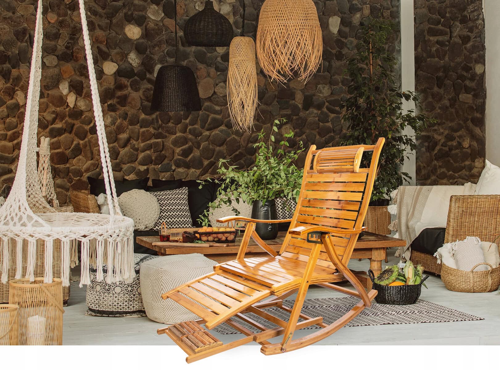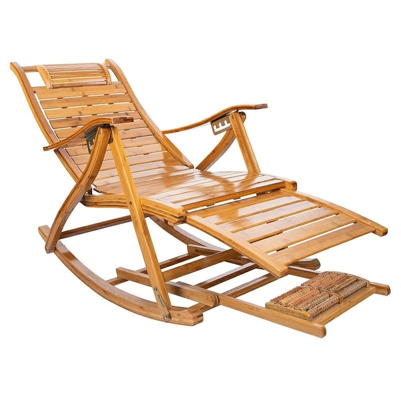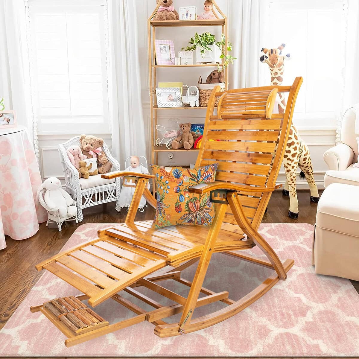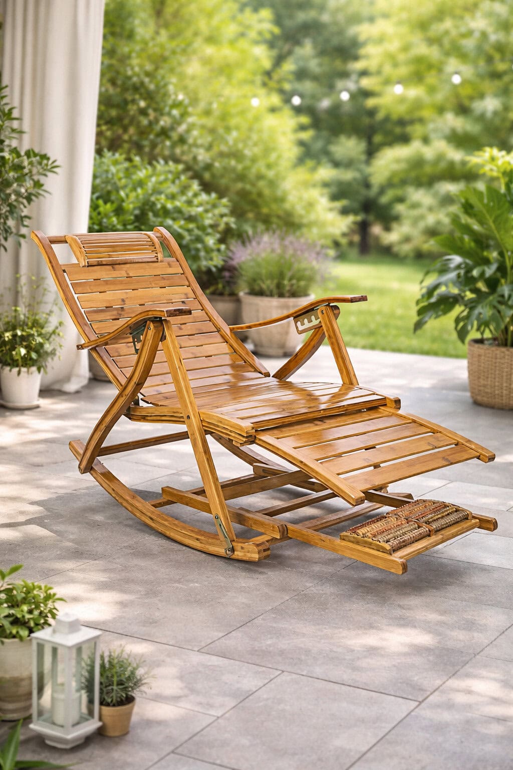 Fotoliu balansoar multifunctional, reglabil 5 pozitii, cu suport picioare si masaj, 158 cm, bambus Mob360