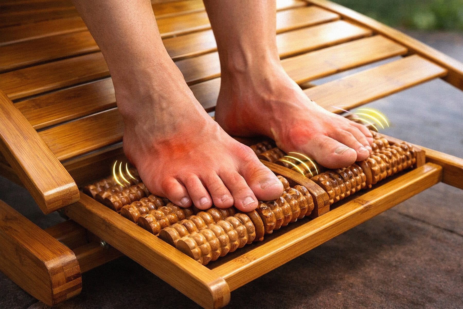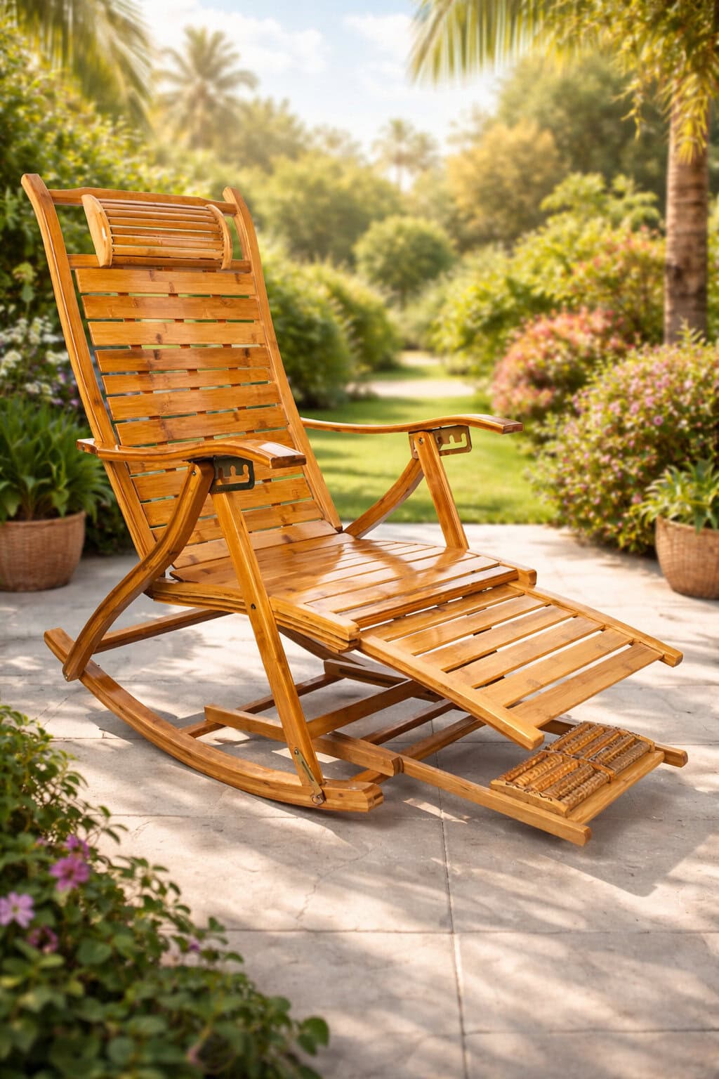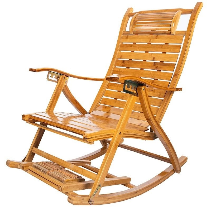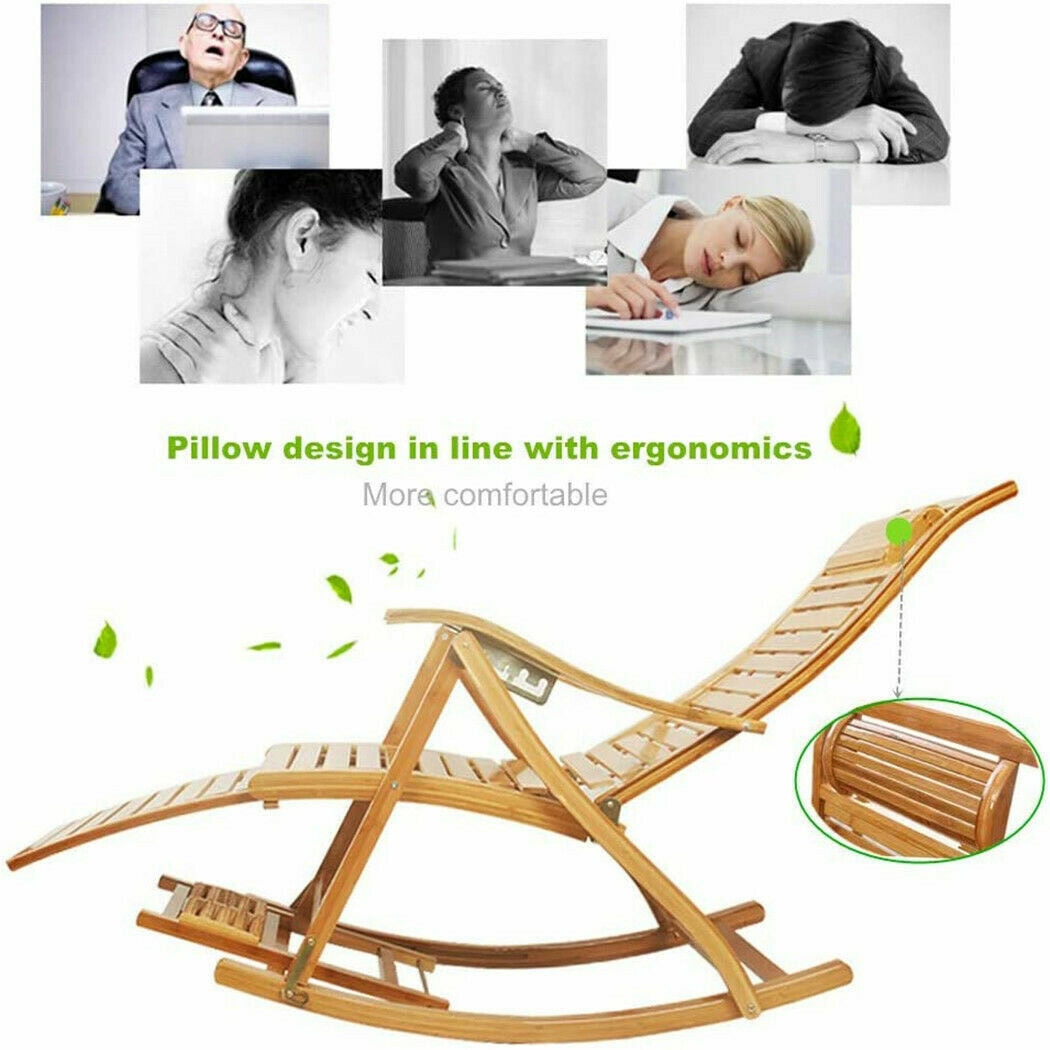 Fotoliu balansoar multifunctional, reglabil 5 pozitii, cu suport picioare si masaj, 158 cm, bambus Mob360