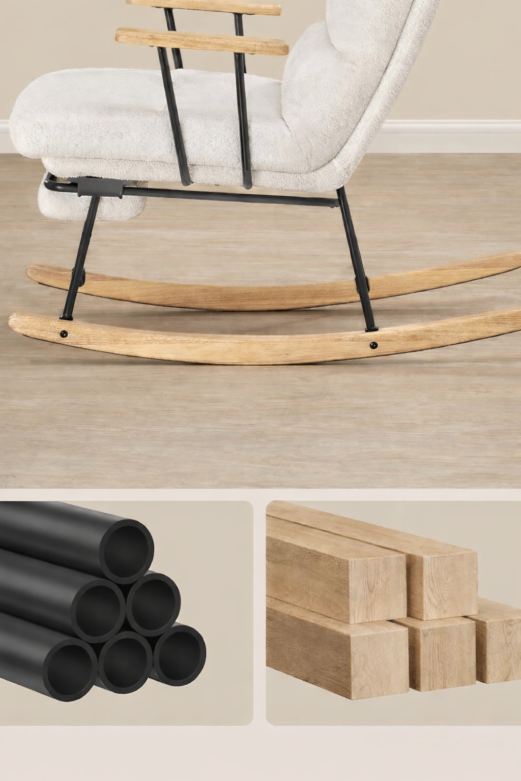 Specificatii tehnice Brand: SONGMICS HOME Model: LYY016W01 Culoare: Crem alb Material cadru: Otel si lemn de cauciuc Material tapiterie: Textil plusat Umplutura sezut: Spuma de inalta densitate Umplutura spatar: Fibra poliester Dimensiuni: 85 x 75 x 105 cm Adancime sezut: 50 cm Suport picioare extensibil: Da Sarcina maxima suportata: 160 kg Scurta descriere SONGMICS HOME Fotoliu balansoar ofera confort si relaxare in orice moment al zilei. Spatarul reglabil in 4 pozitii si suportul de picioare extensibil permit ajustarea pozitiei ideale pentru citit, odihna sau relaxare. Tapiteria moale si designul elegant in nuanta crem se integreaza usor in living sau dormitor. Caracteristici principale Spatar reglabil in 4 pozitii pentru confort personalizat Suport picioare extensibil pentru relaxare completa Tapiterie moale si placuta la atingere Sezut cu spuma de inalta densitate Cadru stabil din otel si picioare din lemn de cauciuc Baza curbata pentru balansare lina si sigura Banda antiderapanta pentru stabilitate suplimentara Design elegant potrivit pentru living sau dormitor Montaj simplu cu instructiuni incluse