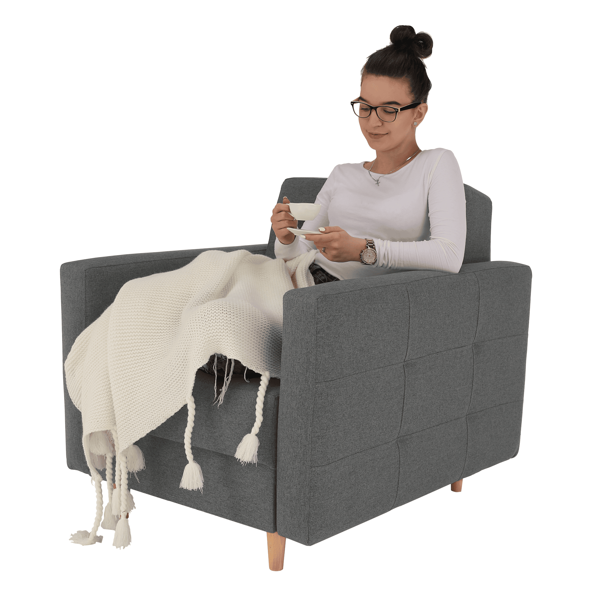 Fotoliu complet tapiţat, material textil gri închis, AMEDIA